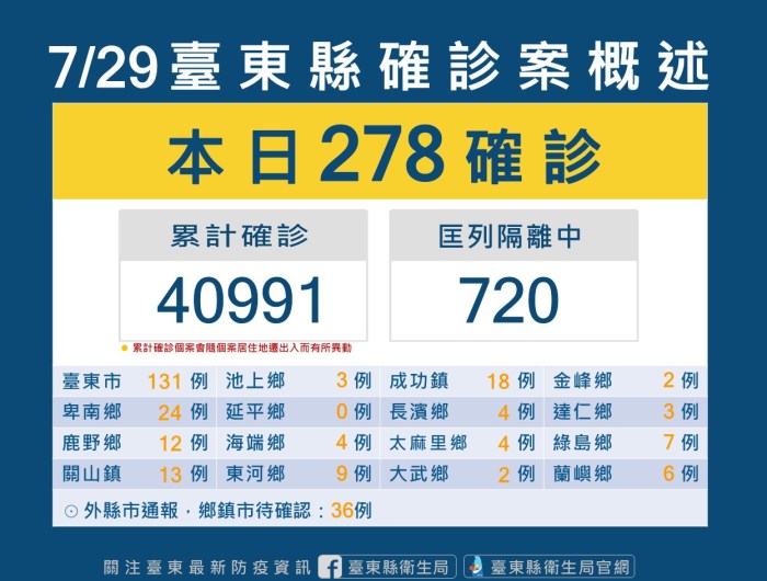 台東縣今+278確診 衛生局呼籲確診個案應確認清楚填選3+4或0+7 經查證不實者將予以裁罰