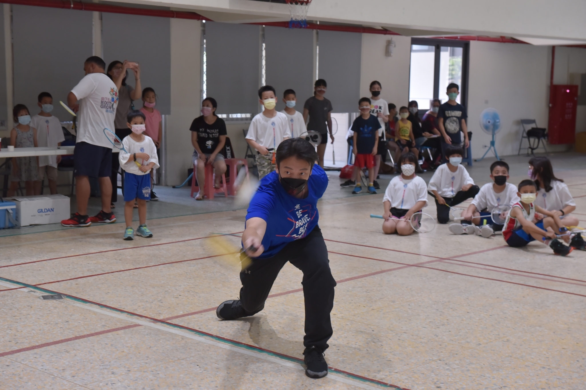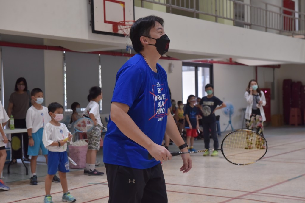 黃達祥代表提到,這次活動邀請到高文哲、林家福、張錦豪、吳金倫四位教練來指導小朋友,他們除了有工作外,特別撥空下午時間來指導小朋友,也希望能透過這次活動,推廣羽球成為全民運動。