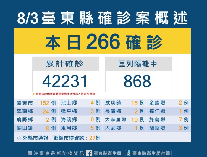 台東縣今增266例衛生局呼籲民眾儘快完成完整疫苗接種 落實防疫措施