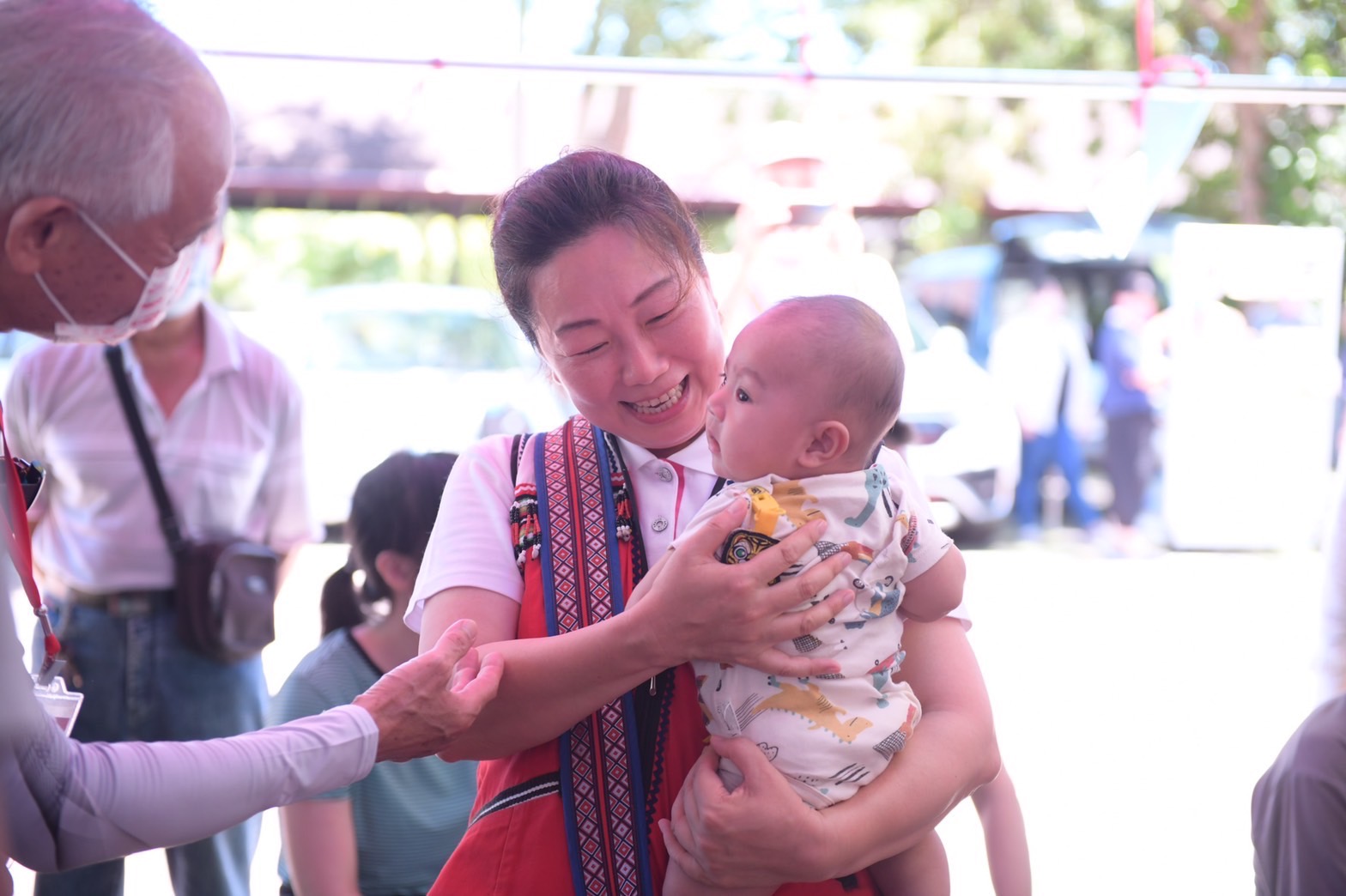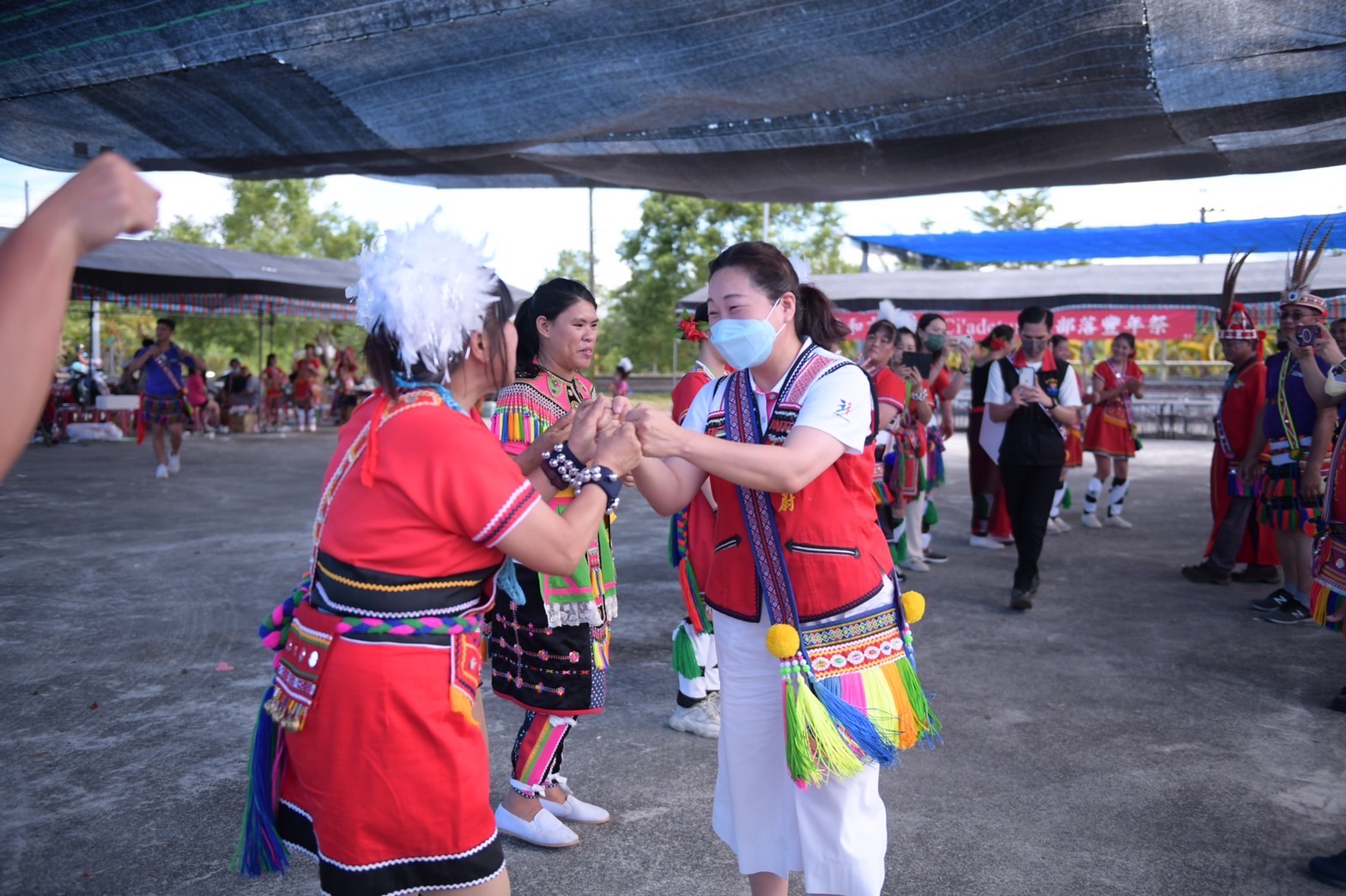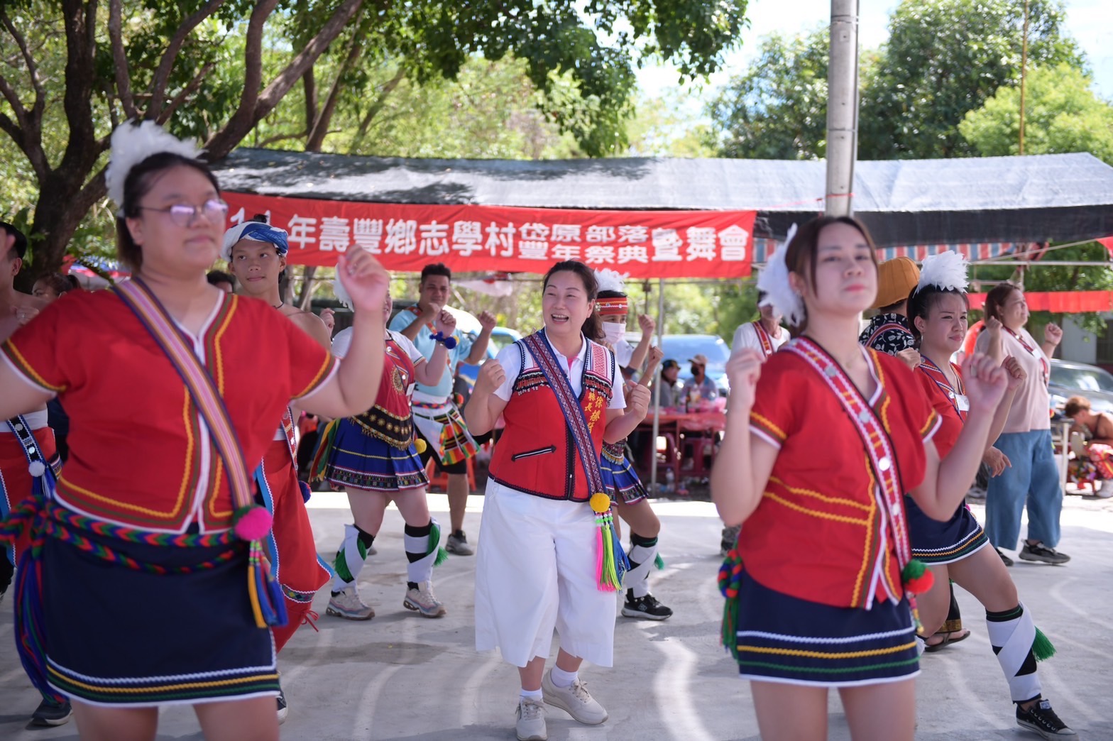 緊接著,徐縣長接續前往慶豐部落、南華部落、歌柳部落、仁和部落、吉寶竿部落、磯固部落、北埔部落、志學岱原部落以及吉阿都蔓部落,傍晚則前往達蘇達蘇湳部落、幾可普部落、吉拉波克部落以及達固部灣部落參與豐年祭,一到活動現場,就被許多族人夾道簇擁,族人們熱情的牽起手一起圍舞,猶如今日豔陽般,讓徐縣長備感溫暖。