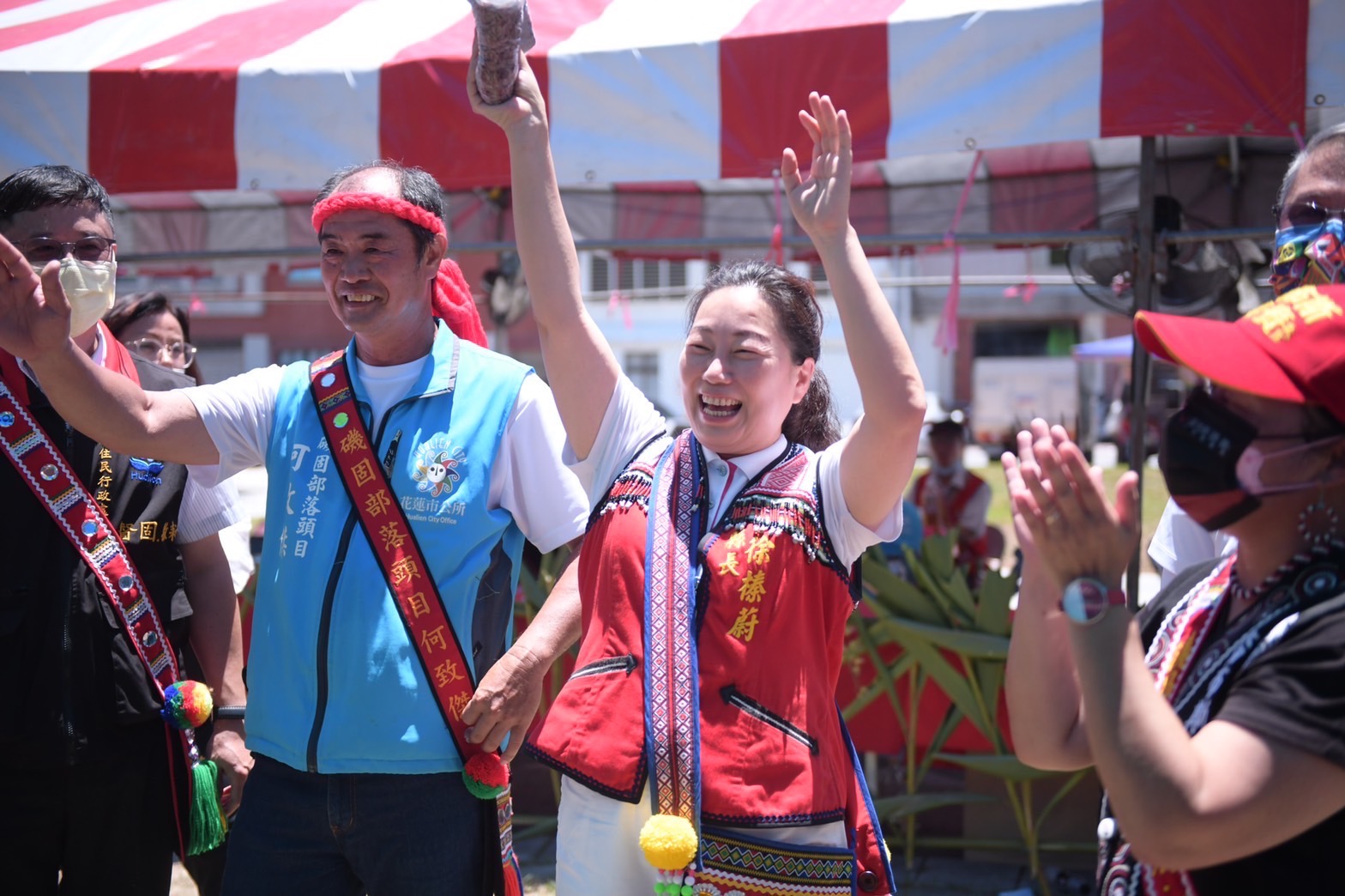 花蓮縣的原住民族群多元,每逢七、八月暑假期間,各部落都會接力舉辦各式祭儀慶典活動,今(6)日正是個豔陽的好天氣,花蓮縣長徐榛蔚在原民處副處長督固.撒耘陪同下,分別前往吉安鄉、花蓮市、新城鄉以及壽豐鄉等14個部落,喜迎部落青年回家,與部落族人歡慶豐收。