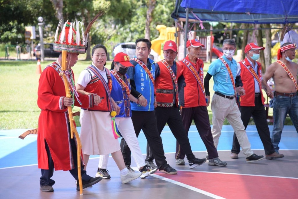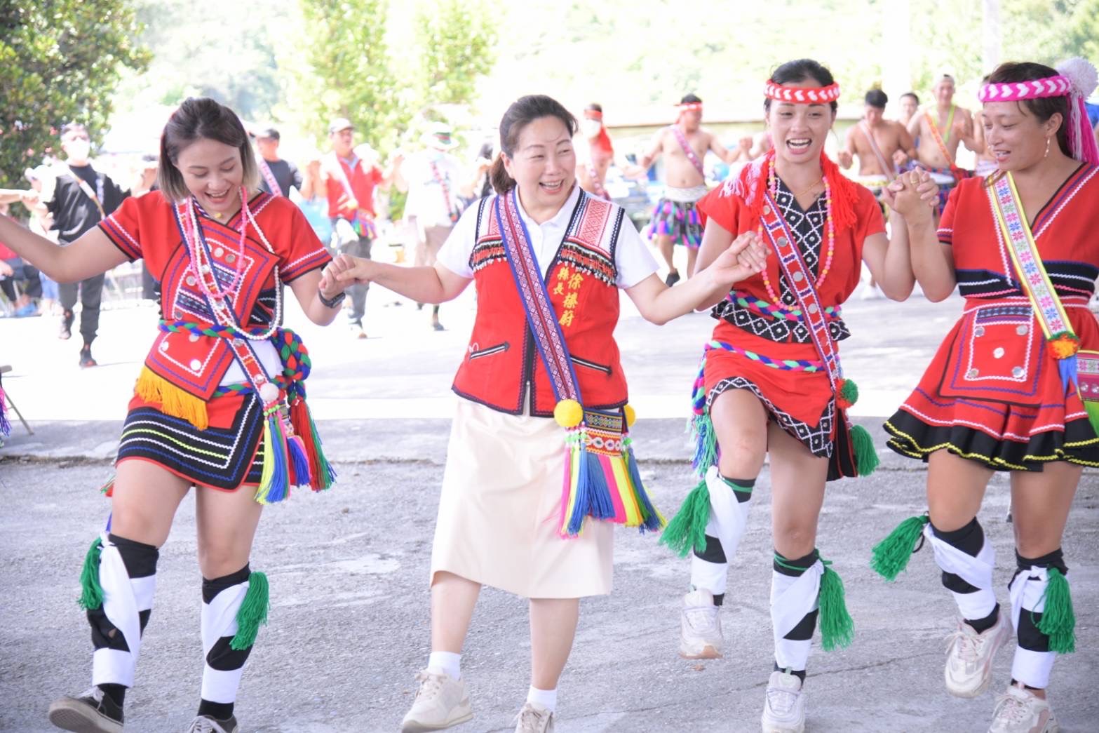 「Ina,Mama,Salikaka mapolong,Nga’ay ho!(在場的長輩、各位弟兄姊妹們,大家好!)」徐縣長接過麥克風,便高聲熱情的與部落族人問候,她說,真的非常開心到各個部落與族人歡慶豐收,尤其是看到這麼多部落青年返鄉,更看著部落勇士們進階,承載傳承原住民文化的責任,而今日適逢父親節前夕,徐縣長也不忘祝福部落長輩父親節快樂,希冀各個部落都能持續枝繁葉茂、昌盛壯大,年年相聚慶豐收。