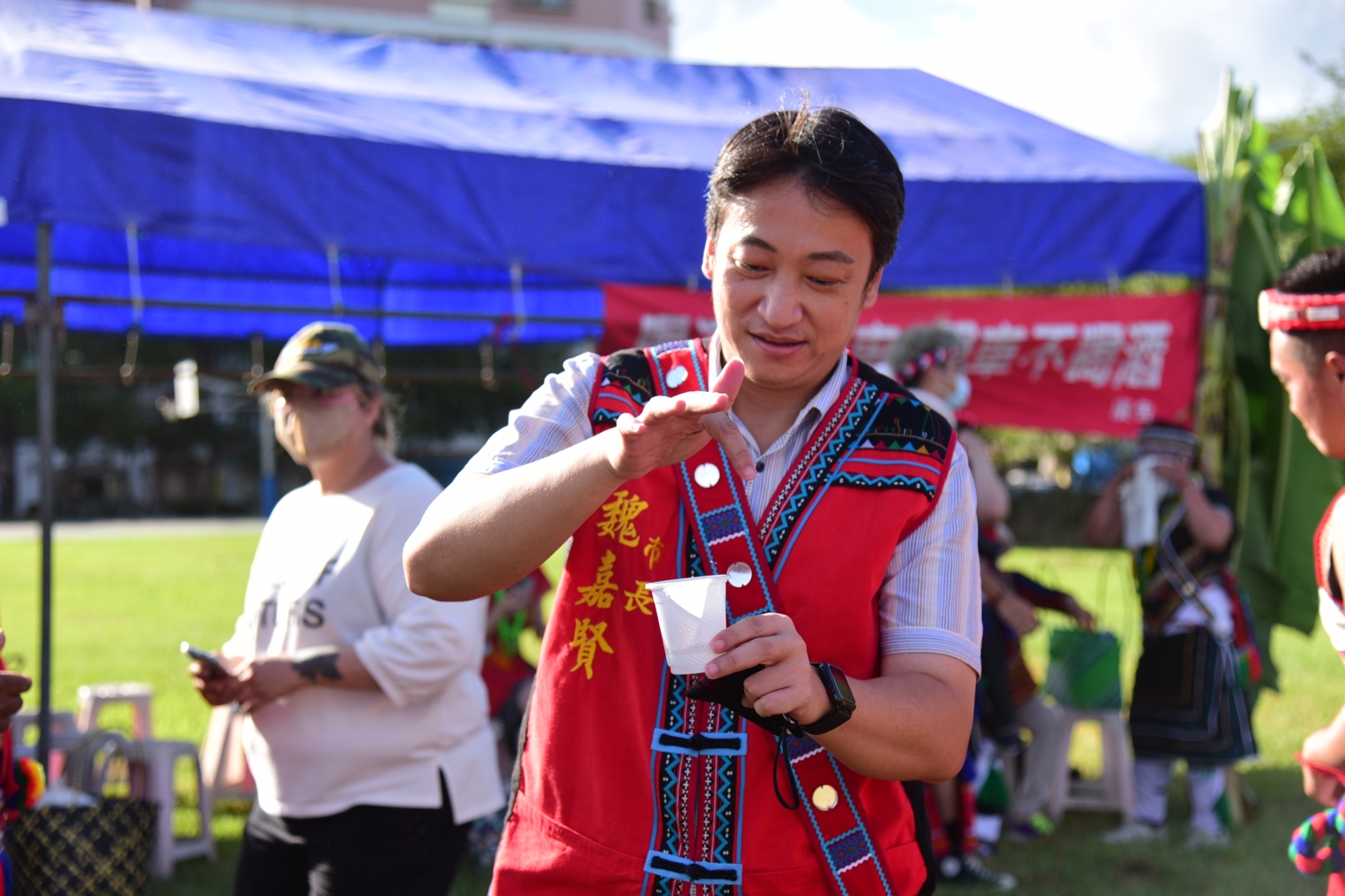 魏市長第一站先到球崙運動公園參與幾可普部落豐年祭,並發給文化基金做為豐年祭的補助。頭目楊宗寰帶領魏市長等人一起跳大會舞,以原住民最傳統的舞步來展現對祖靈庇佑族人的感謝。現場看到旅居外縣市的部落族人專程回來參加盛會,以及小朋友跟著部落長輩一同上場慶豐年,魏嘉賢說,去年受到疫情的關係,導致部落豐年祭被迫停辦,而在今年看到族人回到家鄉參與盛會,希望族人能謹記先人流傳下來的祭儀與技藝的傳統文化,展現原住民傳承文化向下扎根的豐碩成果。