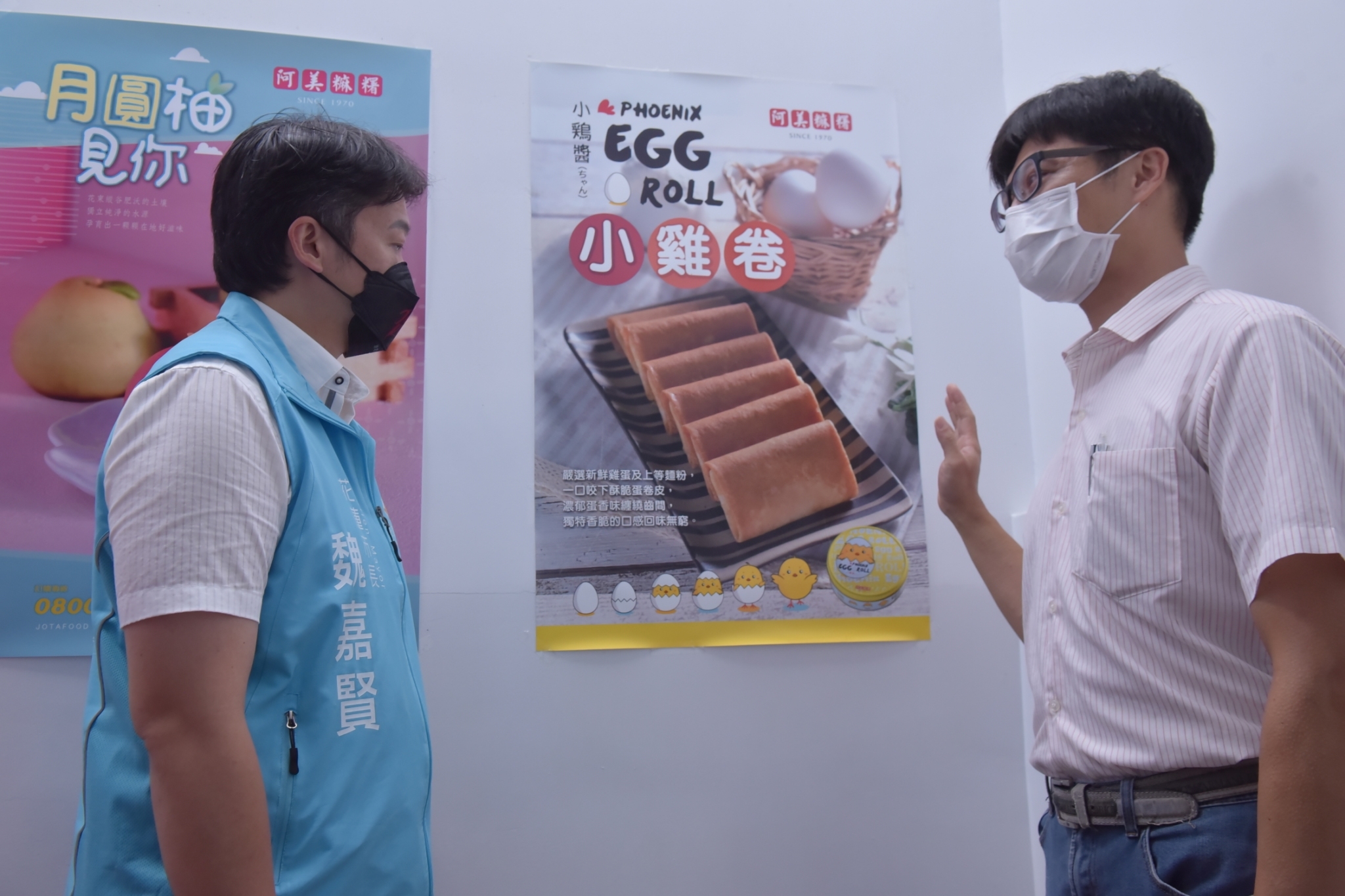 由行政院農糧署舉辦的「2022全國特色米製伴手禮創意競賽」日前揭曉獲獎名單,宗泰食品(阿美麻糬)以改良版的小雞卷勇奪全國第三名的佳績,花蓮市長魏嘉賢特別前往宗泰食品貼紅榜表達祝賀,也現場走訪參觀製作流程,他也希望有更多花蓮在地的名產業者可以精益求精,繼續在全國舞台上端出優質的特色名產讓更多民眾認識花蓮、愛上花蓮。