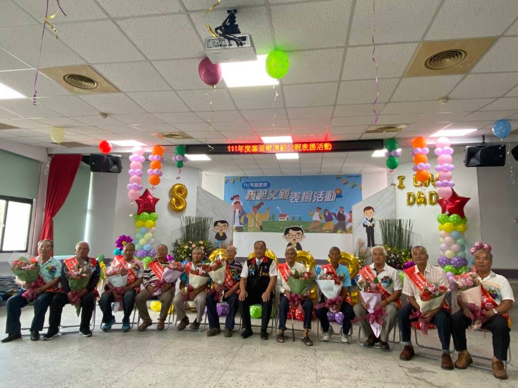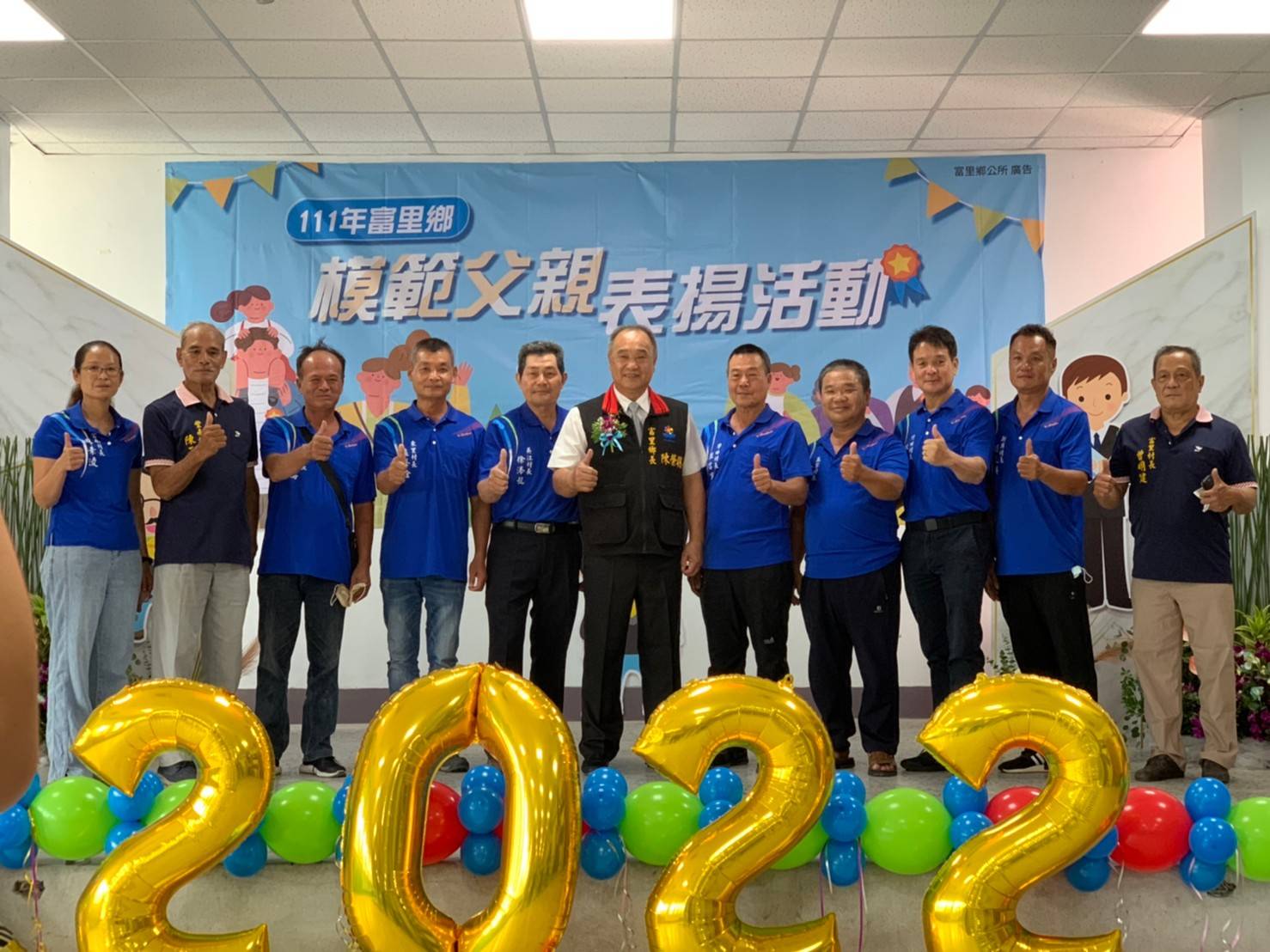 為慶祝一年一度的父親節,富里鄉公所於8月8日辦理「111年度模範父親表揚大會活動」,由鄉長陳榮聰親自表揚富里鄉各村的13位模範父親,為辛勞的父親們披上彩帶、送上花束、匾額以及禮品,而同樣身為父親的鄉長更笑稱父親節同時也是「付清節」,幽默道出各位老爸平日承擔各種責任卻無怨無悔的偉大!