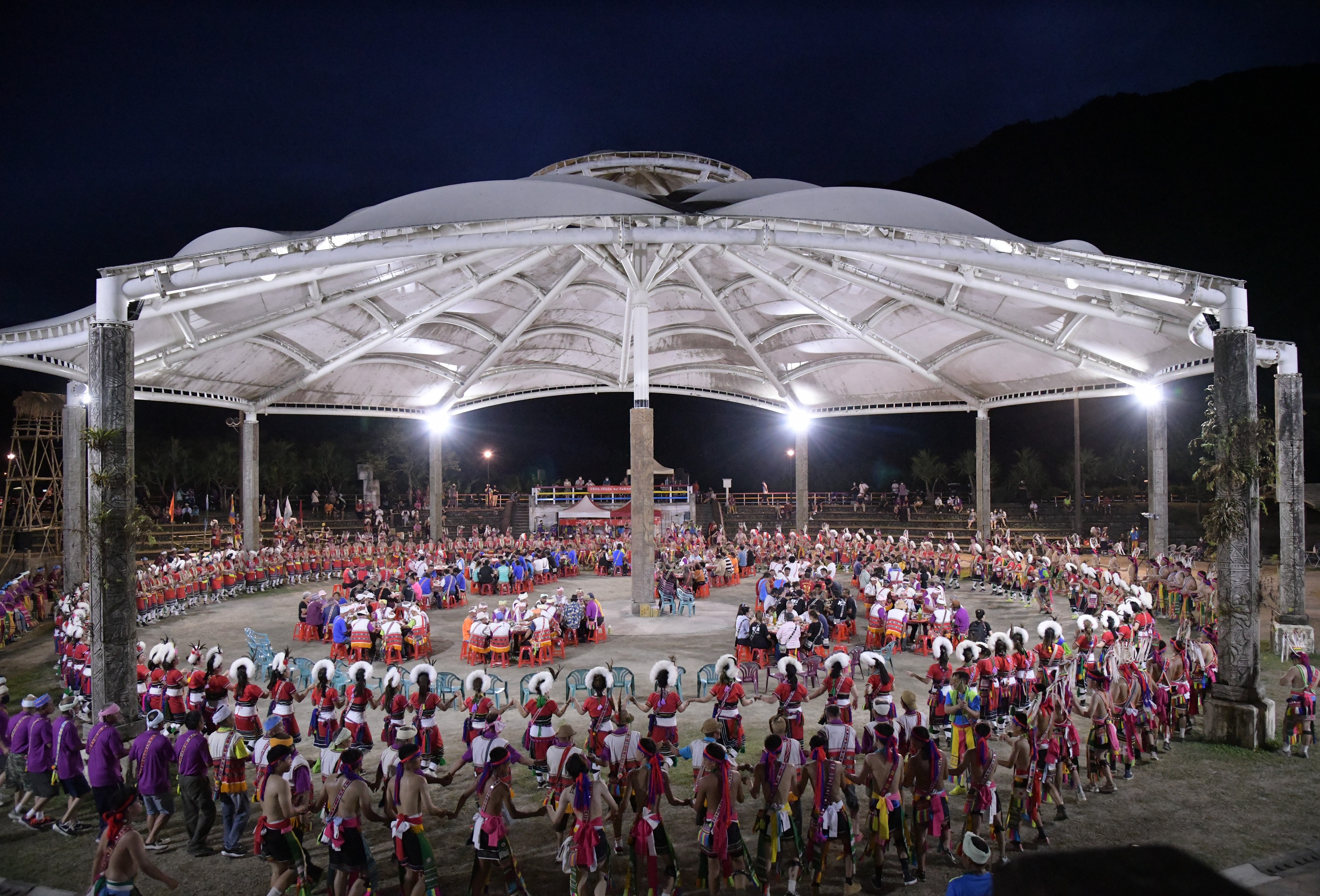 阿美族各部落每年7至8月舉行歲時祭儀,在花蓮縣境內由南至北皆能看見部落頭目以古調進行領唱迎靈祭歌,族人著傳統服飾手牽著手歌舞答唱,告知祖靈舊的一年完結,祈求來年豐收、部落平安。而貓公部落祭儀昨(8)日進行第三天為部落宴客(palafang)儀式,部落宴請傳統佳餚,共同分享部落今年收成喜悅,宴後邀請所有賓客下場與族人共舞同歡。