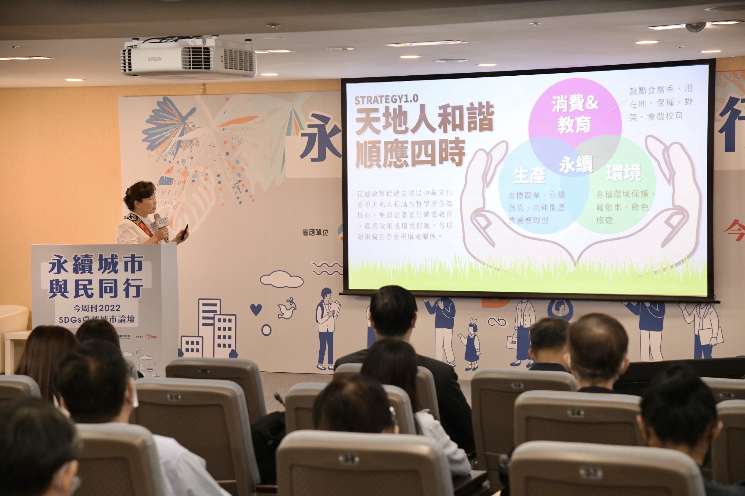 國發會高仙桂副主委高呼「Mission、Action、Passion」,受氣侯變遷及COVID-19疾病已逐步威脅到人類的生存及財產安全,加上社會人口邁向高齡老化問題,更突顯了永續議題發展的重要性。她表示非常榮幸受邀請參與此次論壇,根據聯合國統計全球有88個城市提出了自願檢視報告,台灣的6都22縣市也包含其中,呈現出台灣中央及地方政府皆積極將永續治理當作公共治理的新標竿,以具體的數據內容,向國際或國人展現台灣邁向永續發展的決心,是非常值得讚賞及驕傲的。也期望透過此次標竿各縣市的交流,激盪出更多力量,鏈結中央、地方及企業共識,讓熱忱得以擴散,一起帶動台灣邁向永續發展。