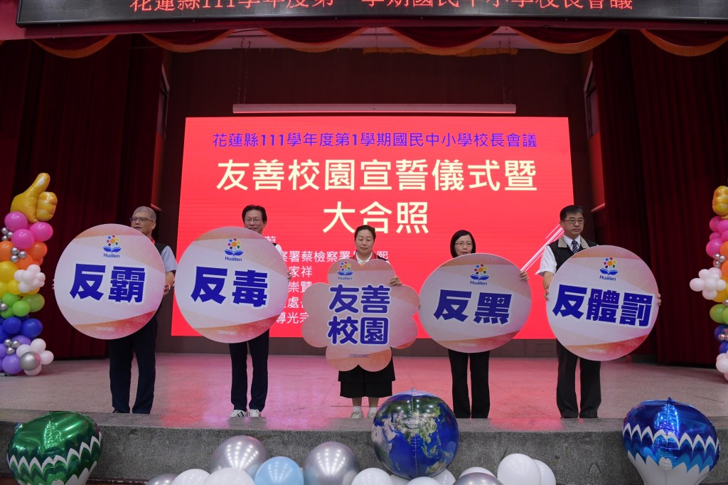 會議邀請花蓮縣各國中小公私立學校校長參與,會議開始由縣長徐榛蔚在教育處翁書敏代理處長的陪同下,與花蓮地檢署蔡宗熙檢察長、衛生局局長朱家祥、警察局局長戴崇贒、校外會督導韓光宗,帶領所有與會校長進行友善校園宣誓儀式,共同為校園反毒、性別平等推動及校園防制霸凌等做出承諾,在新的一年更加落實友善校園的各項推展工作。