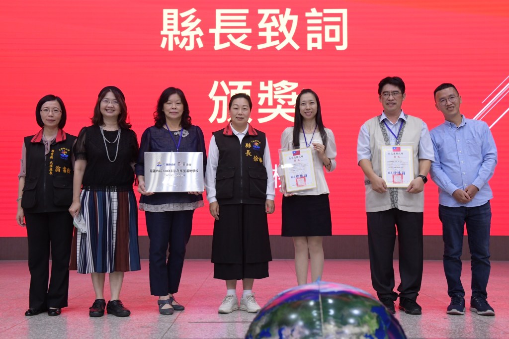 徐縣長以碳權為例進行說明,碳權聽起來很抽象,請花蓮縣環保局進行協助,透過實際的例子,讓學生知道碳權、碳價如何計算,師生一同實踐,希望花蓮的中小學校都能成為淨零碳排的示範學校。從學校開始做起,拓展到社區,再推廣到村里,全縣公部門與民間企業也要啟動,希望大家一起努力,讓未來的環境變得更好。