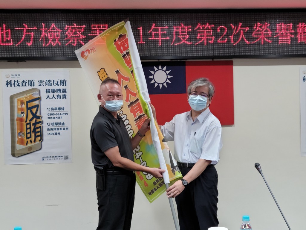 蔡檢察長致詞表示,司法保護政策一直是以展現柔性司法的特質、結合轄內各社會資源、關懷弱勢為執行主軸,也是法務部的年度重點工作;自去年以來疫情期間、各榮譽觀護人出錢出力協助受保護管束人度過生活難關、精神令人感佩;透過榮譽觀護人的關懷及資源提供,經由良性的互動關係、對個案達到有效的輔導、進而降低個案再犯的可能性。觀護工作的核心以保護管束為中心,一方面著重案件輔導、監督受保護管束人、使其能了解過去所犯之錯誤、改過遷善;另方面則協助受保護管束人再社會化、重新適應社會生活;不管是輔導監督或教育宣導,長期以來都仰賴全體榮譽觀護人的用心協助,才能順利的推動;另外今年11月26日將舉辦九合一選舉,蔡檢察長亦詳細說明反賄選之重要性並授旗榮譽觀護人協進會理事長吳清壬與更保協會主委黃淑珠,期許在座榮觀及更生輔導員都能成為反賄選的社區尖兵。
