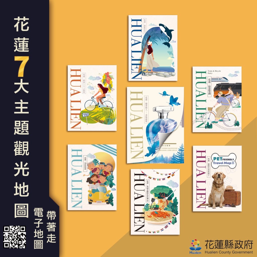 花蓮縣政府推出7大特色主題的旅行地圖,邀請民眾從各種視角體驗花蓮,包括探索最美的蔚藍台11線和稻浪193線、以雙鐵悠遊花蓮、尋訪花蓮的各種香味,以及品嚐外國老闆製作的道地異國料理,同時也特別為家族親子旅遊及寵物旅遊提供所需的旅遊資訊,滿足不同類型遊客的不同需求,深度體驗花蓮的多元及美好。 觀光處長張志翔表示,花蓮縣政府一直以來積極發展特色主題和分眾旅遊,今年特別新推出「稻浪193」、「蔚藍台11」及「悠遊雙鐵」旅行摺頁,讓民眾沿著193線及台11線深入花蓮兩大國家風景區包含花東縱谷及東海岸,不論是喜歡一個人的輕旅行,或是結伴出遊,都能在各種地圖中找到適合自己的旅遊點,民眾可至花蓮旅遊服務中心及花蓮轉運站索取紙本地圖,或至花蓮觀光資訊網下載 (https://reurl.cc/ERRL3g) 電子摺頁。另外掃描地圖上的QR Code就可連結至Google地圖,方便行程規劃。