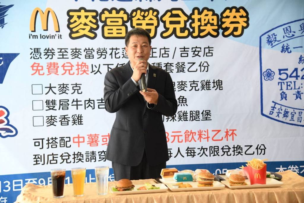 花蓮麥當勞餐廳董事長楊政道表示,回想在外島服役時的情形,感謝國軍肩負著保家衛國的責任,號召社會各界給國軍弟兄們鼓勵,讓國軍感受來自民間的力量與支持。活動期間自111年9月3日至9月11日止,國軍著軍服、持餐券,免費兌換套餐一份,包含主餐漢堡、薯條或沙拉及飲料。