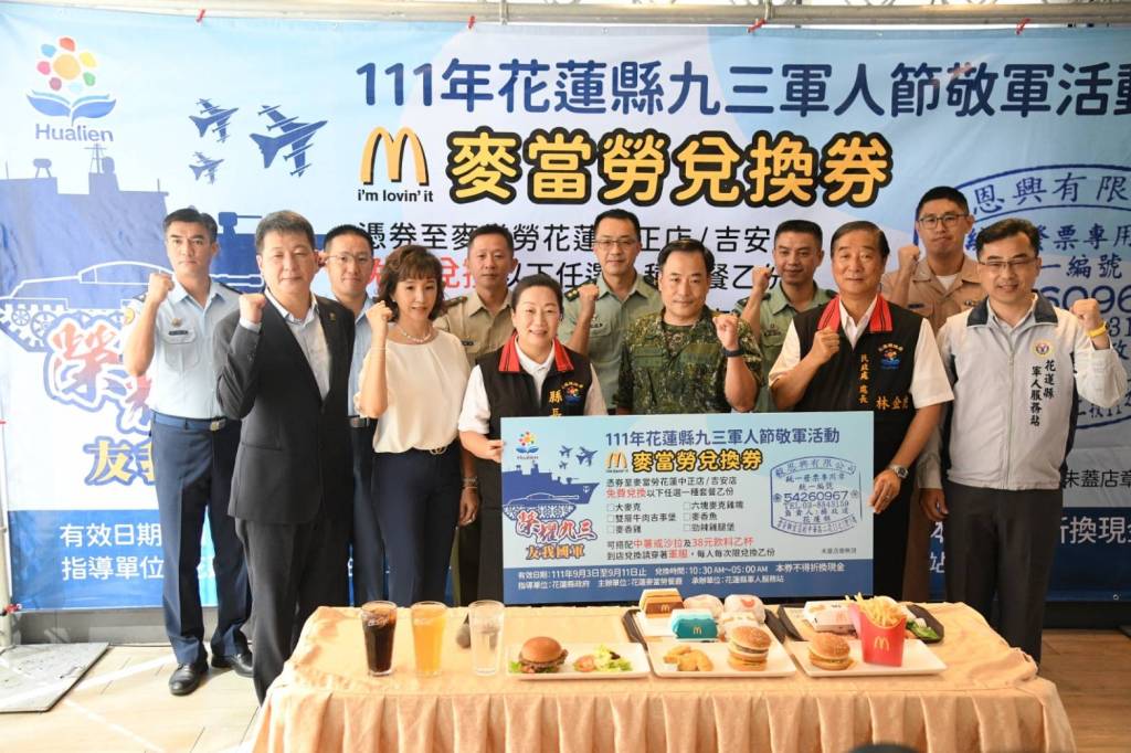 花蓮麥當勞餐廳長年熱心敬軍活動,每年均辦理軍人節敬軍相關活動,展現軍民一家親典範。今年委託花蓮軍人服務站策畫活動、協助發放餐券至各部隊營區;縣長徐棒蔚獲悉後,積極響應,指示縣府民政處予以各項支援與協助。