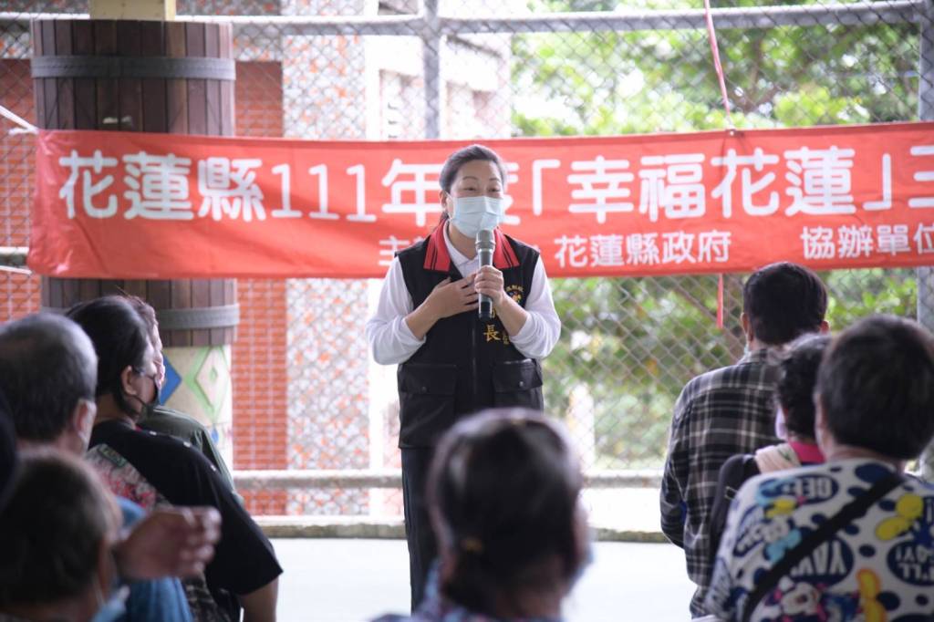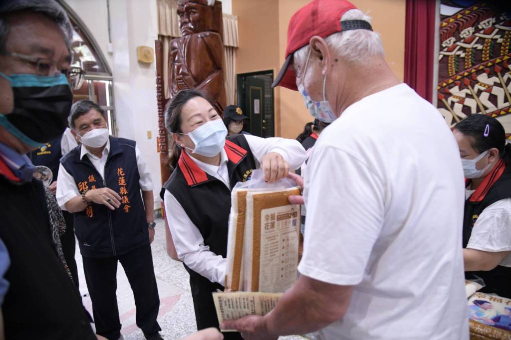 111年度「幸福花蓮」中秋節生活物資今(2)日為最後一日,花蓮縣長徐榛蔚在社會處長陳加富的陪同下,分別前往新城鄉、秀林鄉發放地點關心鄉親領取情形,徐縣長將物資交予鄉親的同時,更提醒鄉親做好防颱準備。