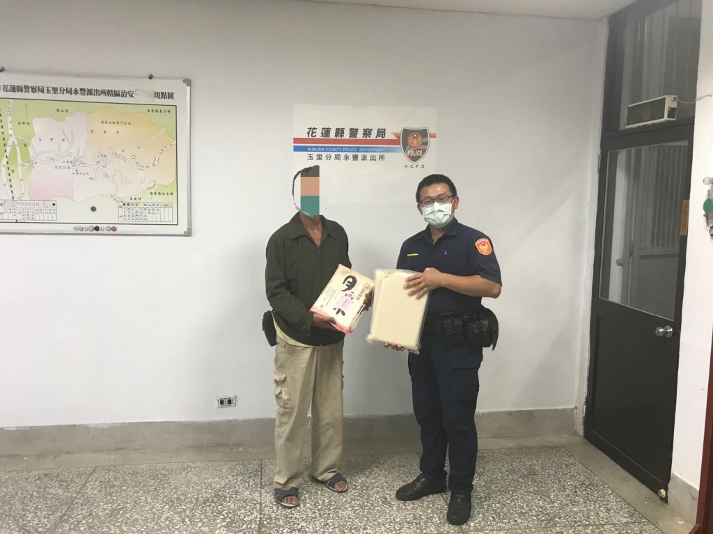永豐派出所警員劉宗庭執行勤區查察勤務,時常前往轄區拜訪民眾,除了進行各項警政工作宣導,並了解其近日生活上有無需要協助;某日行經豐南村時,已熟識的許男向劉員反應,平日經濟來源倚賴打臨工維生,但由於疫情期間臨時工作尋覓不易,經濟來源本就不穩定,需要社會資源協助;劉員得知後立即向村長尋求協助,以減輕其生活開銷,返所後想起所內還有善心人士透過派出所要轉贈給弱勢民眾的白米,便拿取4包總重12公斤幫助許民救急;許男對員警的熱心協助感恩在心,讚嘆部落警察的暖心善行猶如人民保母,實至名歸。