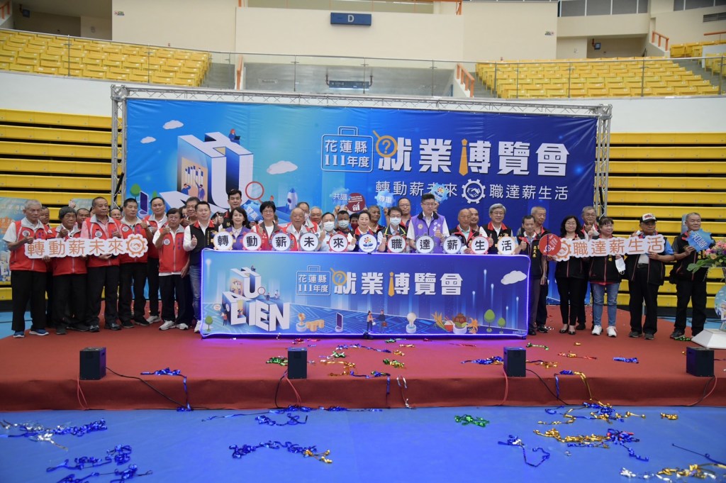花蓮縣政府為提高就業率,今(3)日於花蓮縣立體育館舉辦「轉動薪未來,職達薪生活」就業博覽會,超過30家廠商增設攤位徵才,提供超過600個以上優質職缺,花蓮縣長徐榛蔚率同社會處長陳加富出席現場活動,盼增進企業與求職民眾交流及面談機會,使求職者能夠更深入了解企業特色與發展,找到合適的工作。