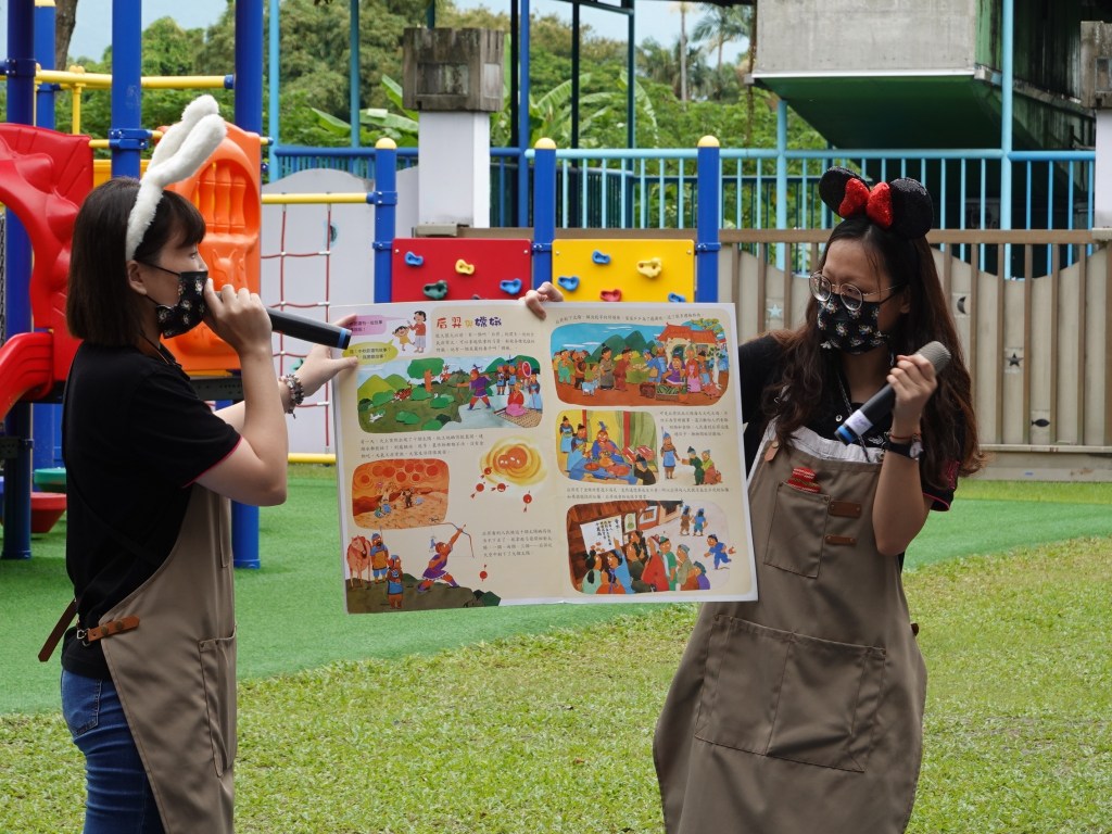 中秋節即將到來,花蓮市立幼兒園針對大、中、小班分別舉辦「中秋溫馨烤肉肉」、「搗搗麻糬慶中秋」、「柚過中秋」,提前讓小朋友一同歡聚,透過這些活動讓孩子認識文化了解意義。花蓮市長魏嘉賢也到現場與孩子們歡度佳節,預祝大家中秋節快樂,同時也向辛勞付出的園長、老師們,說聲教師節快樂。 小班的活動是在中庭進行互動遊戲,這是孩子第一次在幼兒園過中秋節,小班老師為孩子們表演后羿射日與嫦娥奔月的故事,讓孩子從傳統故事認識中秋節,最後讓孩子都吃應景的月餅與柚子,一起感受中秋氛圍。