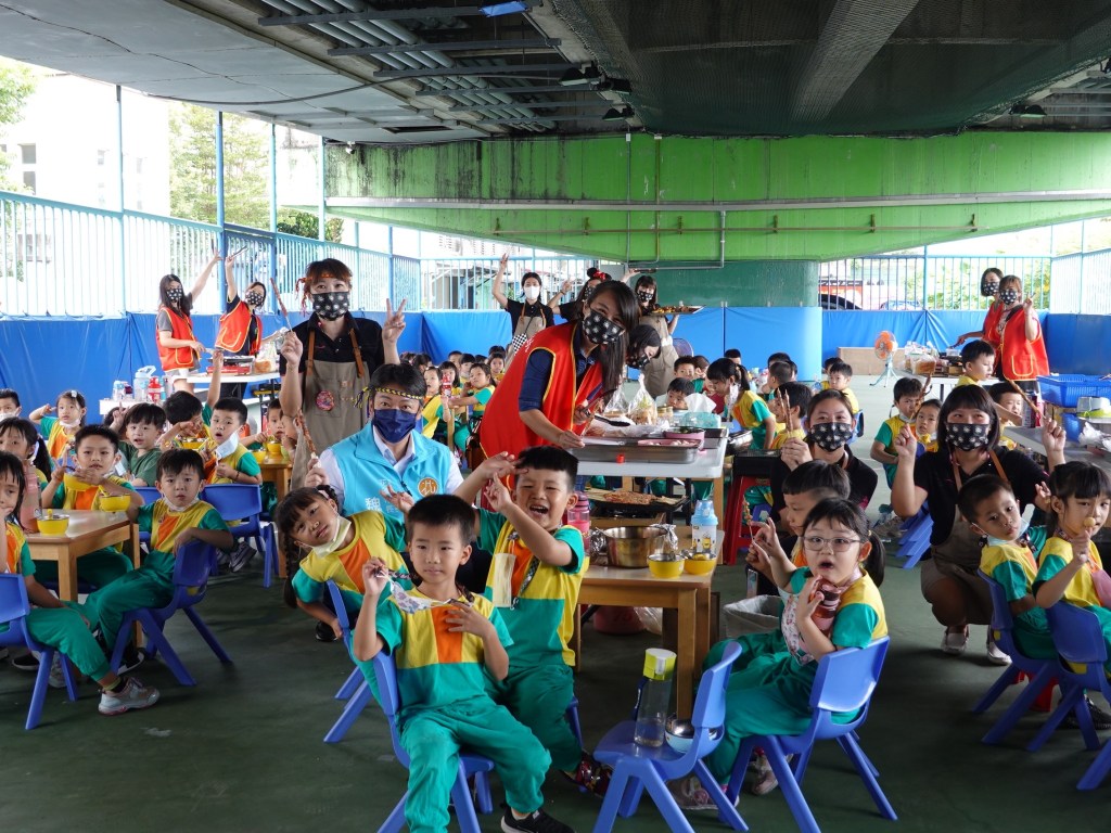 中班的老師在課程中引導孩子了解中秋節節慶活動外,也設計了體驗製作自己麻糬的樂趣,中班的主題是「搗搗麻糬慶中秋」。市長爸爸也跟著孩子們一起孩子動手搗麻糬,孩子們將紅豆餡包入麻糬中,用小手揉圓,圓滾滾的麻糬就完成了,孩子在過程中認識中秋節的故事與習俗,同時也訓練孩子的肢體協調力。中秋節是一家團圓的日子,在台灣中秋節除了吃月餅、柚子,烤肉也是必不可少的活動,大班組老師將中秋烤肉活動融合於節慶中,讓孩子和老師、同學能有歡樂燒烤慶中秋的體驗。幼兒園準備豐盛的烤肉食材,有雞肉串、香腸、豆干、米血、貢丸、還有青椒、玉米等等,小朋友吃得好開心,也邀請其他年級的孩子們一起享用。