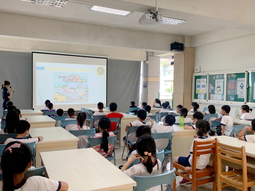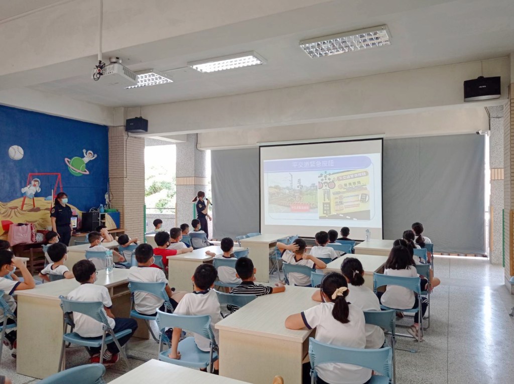 在宣導課堂中,警員陳姵君與警員王怡文亦接力以有獎徵答方式,提醒小朋友們若不幸運地在行經鐵路平交道時,遇到無法動彈狀況或是發現其他障礙物,都應盡速按下設於平交道警報機柱上旁紅色『緊急按鈕』,謹記口訣『按、推、跑』一起保障生命安全。陳員更搭配圖文問答方式,考驗小朋友們對於道路路口「車輛慢看停、行人停看聽」安全觀念熟稔度,玉里國小學童們亦迅速且正確答題,順利得到由鐵路警察玉里派出所準備的各項答題獎勵品,於宣導課堂中滿載而歸,開心地於課堂最後合影留念。