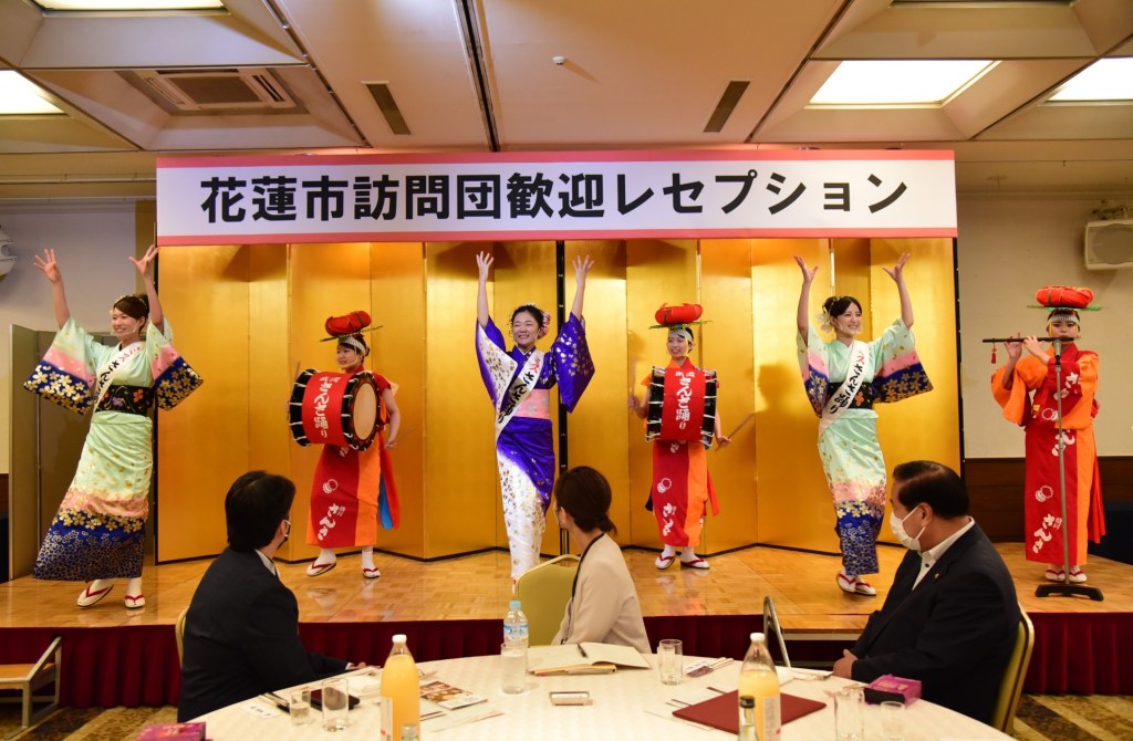 盛岡市役所13日晚上在盛岡皇家飯店設宴歡迎,現場邀請三颯舞者與盛岡藝妓的表演,花蓮知名主持人雷恩此次也隨團參訪,他帶來腹語表演以及魔術演出,讓日本朋友們都嘖嘖稱奇。