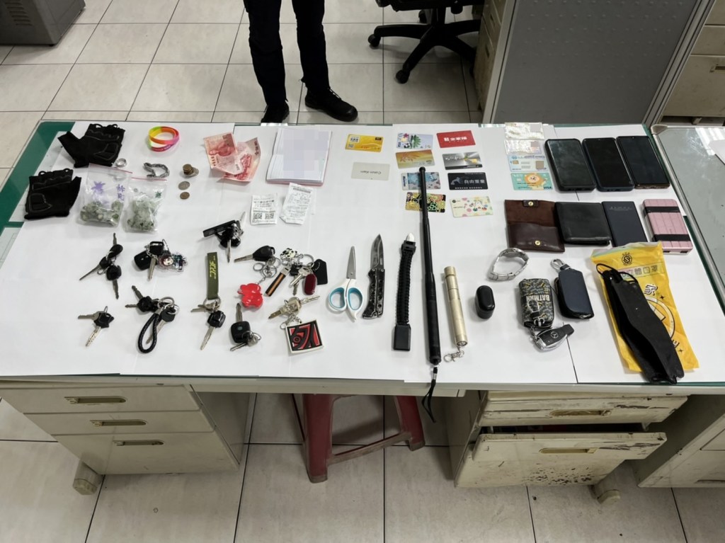 鳳林警分局光復分駐所於日前分別受理邱姓男子汽車失竊案及許姓女子機車失竊案,連續竊案在治安平穩的光復地區極不尋常,所長吳明遠立即陳報分局並組成專案小組,經鷹眼小組調閱案發現場及附近路口監視器,並通報線上巡邏員警協尋,分別於豐濱鄉豐濱村及光復糖廠尋獲失竊汽、機車,經分局鑑識小隊採證及犯嫌移動軌跡,調閱沿線監視器畫面掌握犯嫌特徵,發現均為同一竊嫌所為,並依據犯嫌特徵,鎖定富田地區曾姓男子(41歲)渉有重嫌,並發現曾男另因竊盜案未到庭已遭基隆地方法院發布通緝在案,專案小組循線前往豐濱鄉逮捕曾嫌隨即帶返偵訊;同時附帶搜索查獲曾嫌持有折疊刀、手腕刀及三截伸縮鐵棍,贓物包含汽機車鑰匙、行動電源、手機及皮夾。