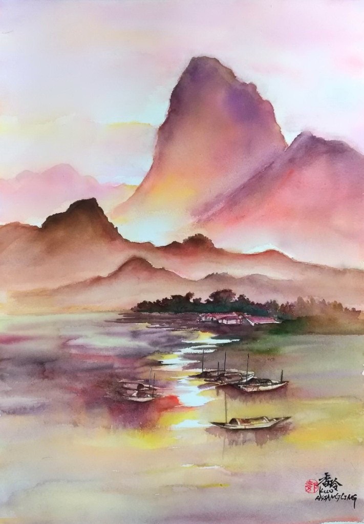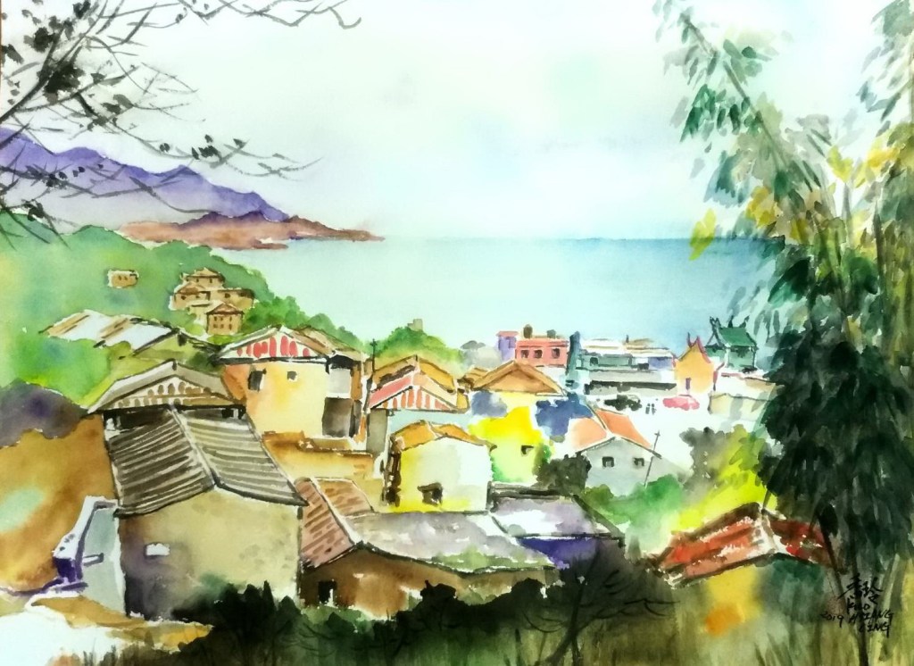 郭香玲的「水彩」創作展現國內鄉土風景為主,從動態的波光水影、肌理的呈現、乾澀變化、水的流動運用和顏色的碰觸,呈現對景點、人物神情的詮釋,技法上有西方傳統水彩寫實細密的表現,更有美式水彩酣暢及歐式浪漫的風味,其中更蘊含著東方水墨的渲染特質。這次作品有由366「善」字散播「善行、善心、善念」精神,呈現「善藝」循環,以「善」來豐富心靈活泉、啟發生命活力,讓大家一起來行善路、結善緣。