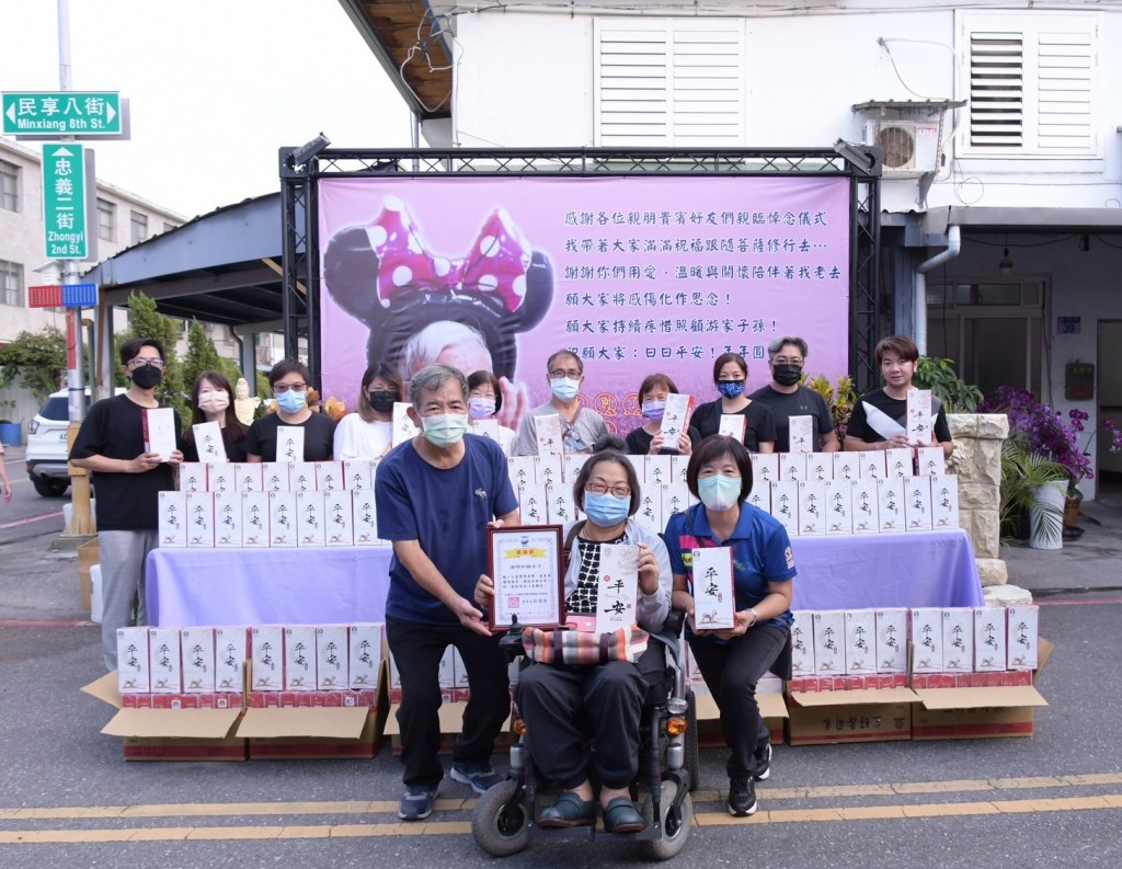 游淑貞也特別由衷感謝治喪期間大家的關心及陪伴,在百忙之中仍前來向母親捻香,給予游家子孫很多正向的鼓勵及關懷,對於治喪期間帶給左鄰右舍生活叨擾及交通上的不便,真誠的表達歉意及感謝。母親一生胼手胝足,仍教育後代長存無私奉獻精神,如今母親的人生旅程完美畢業,希望這份代表母親的愛心能持續讓這個社會延續關懷,因此由大哥帶領家族子孫們完成這項捐贈儀式。