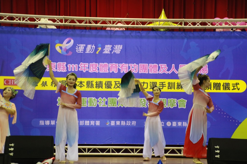為響應教育部體育署訂定9月9日「國民體育日」,臺東縣政府今(17)日舉辦111年度體育有功人員表揚暨運動社團成果發會,表揚優秀體育人才及熱心推展體育活動人員,並結合地方運動社團成果發表會。縣長饒慶鈴感謝受獎個人及團體,允諾運動扎根及提供優質運動環境,並表示縣府積極推廣全民運動,持續辦理專屬臺東的面山親海教育,打造優質多元的運動環境;非常感謝大家對體育的支持貢獻,藉此鼓勵民眾將運動生活化、生活運動化,大家一起運動九九、健康久久。
