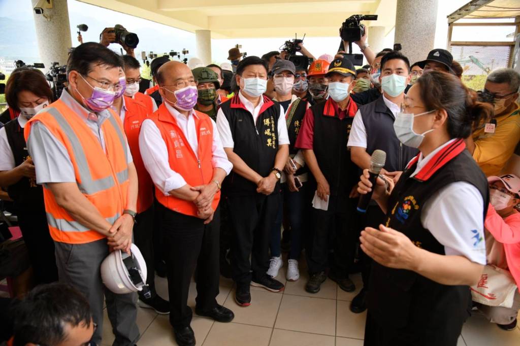 行政院長蘇貞昌首先感謝徐縣長領導縣府團隊,在第一時間站在第一線進行災害的搶救工作,也特別感謝國軍同袍、警消、所有醫護人員,大家不眠不休搶救受災的民眾。對於震災損害的部分,蘇院長表示,需要專業技師勘查,盡快做好,因為花東地區較多地震,相關耐震強度需要補強;校園方面,盡快恢復學校原有的情況。蘇院長說,對於這次震災復原的情形,中央全力支持,由相關團隊在各種方面的需要上,盡量做到最快最好。對於視訊會議產生的誤會,蘇院長表示是作業上疏失,導致沒有跟地方政府連線,對此致歉並表示會改進。