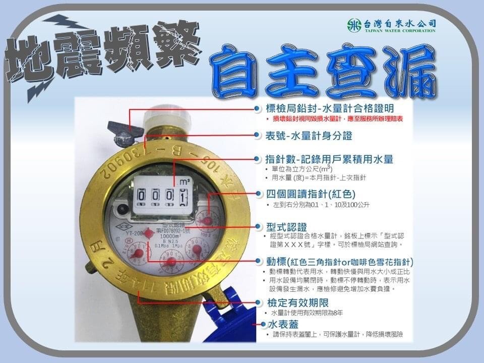 受0918池上地震影響,玉里鎮多地區出現停水或減壓情形,是因災害影響而須進行管線破管的緊急搶修。台灣自來水公司(後面簡稱台水公司)於18日成立緊急應變小組,調派人力展開搶修。鎮長江東成提醒,鎮民們近日可至自家鄰近的取水站取水。也希望民眾可協助查報居家周邊管線狀況,如發現水管破裂可撥打1910客服專線主動通報破裂地點,加快修漏作業的執行,期望在最短時間恢復正常供水。 台水公司目前共出動8台水車在鎮內巡迴送水,以即時挹注儲水桶。並經24小時輪班進行檢漏及修漏作業後,已大幅降低受影響用戶數。惟除地面漏水處外,現地下仍藏有許多「看不見」的漏水點。江鎮長表示,台水公司近期已調派花蓮全區的修漏廠商投入玉里。今日在鎮內也看見徒步運用聽音設備進行檢漏作業的職員。突發天災導致民生用水也受衝擊,希望民眾一齊為回復家園提供助力,如在家門口或社區中發現有水管破裂處,請立即撥打1910。 台水公司也提供震災用戶用水減免措施。在統計用戶過去用水資料後,如當期帳單費用顯示特別高,判斷為天然災害所造成者,增加部分將得予以減免。也建議用戶檢查家中用水設備,觀察水表在未用水狀態下,指針是否仍持續轉動,避免地震後未察覺漏水,減少水費突增風險及水資源的浪費。