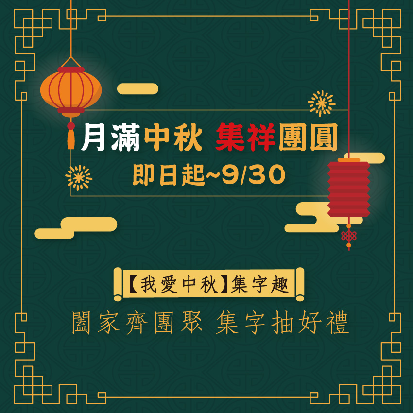 新天堂樂園於9月推出『我愛中秋』集字趣活動,活動時間:即日起 ~ 9/30止。