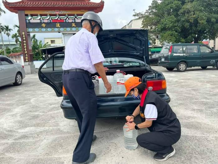 義消大隊長鍾素政帶領花蓮縣消防局第三大隊,出動水車至玉里鎮與富里鄉 解決暫時缺水問題