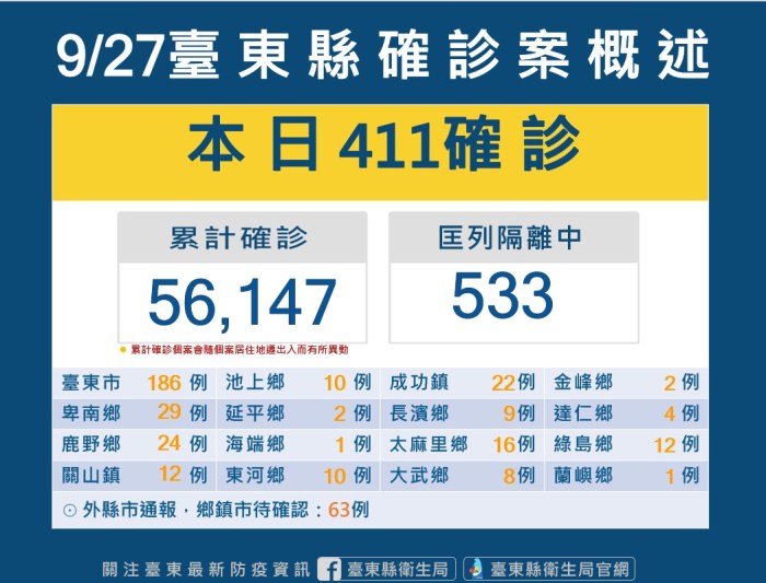台東縣今新+411確診案例 衛生局呼籲民眾盡快完成疫苗接種