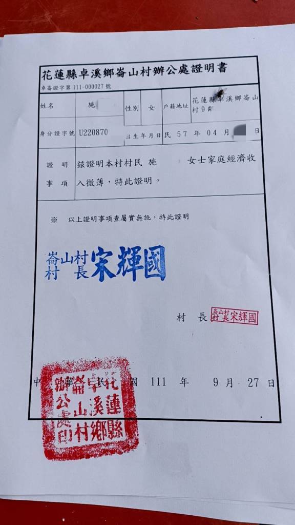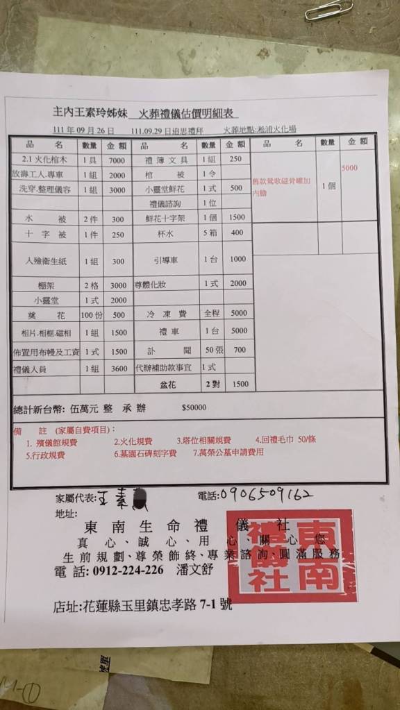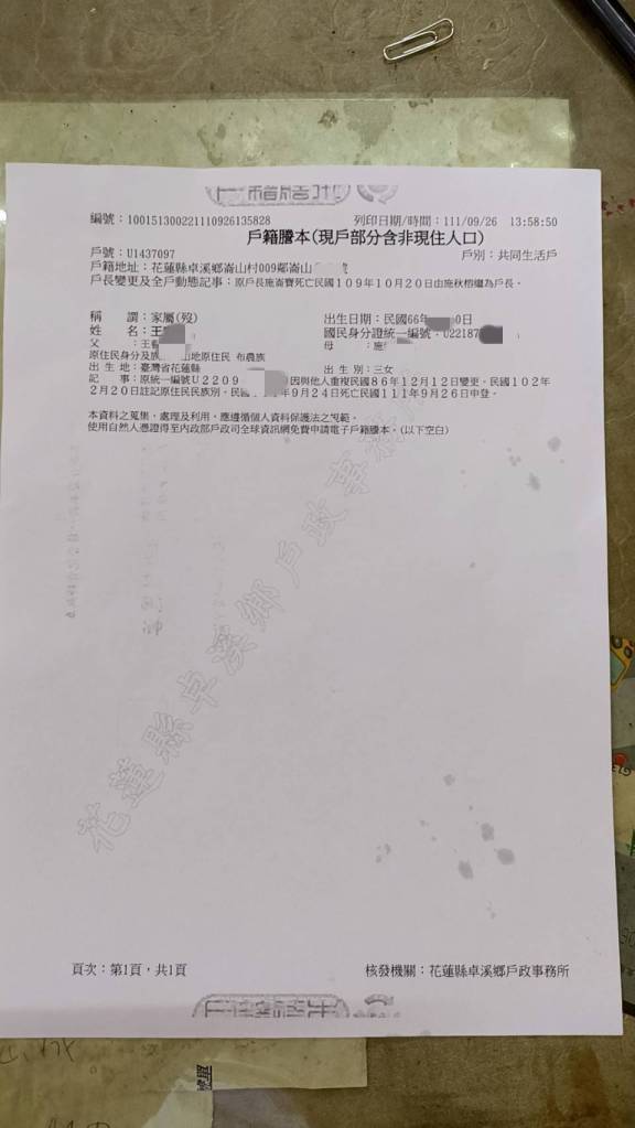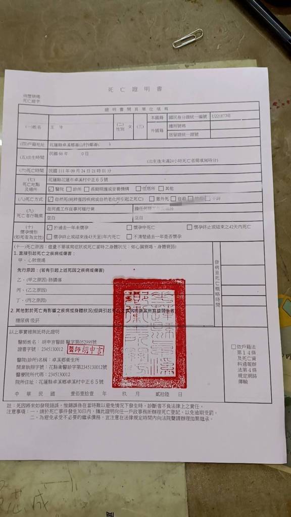 住在花蓮縣卓溪鄉崙山村山上的王小姐日前因病離世,然家境清苦無法處理後事,故尋求社會善心大眾協助。