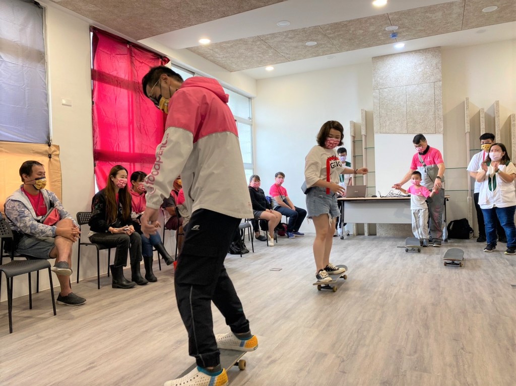 很快地藉著滑板體驗拉近彼此的距離,其中一位和爸爸一起出席的小小朋友,成了現場最勇敢的首位挑戰者,在家扶的大哥哥教導下,滑出人生第一步,讓大家都心滿意足的笑了。一位外送夥伴表示「家扶中心為孩子努力,因為這活動有更深刻感受,加油,孩子們加油。」