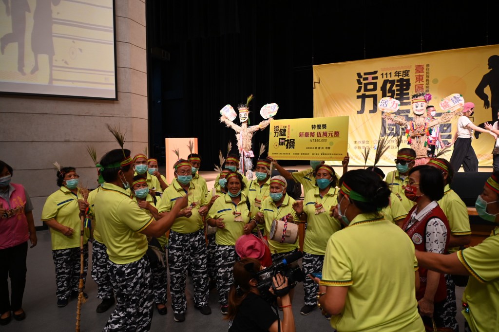 臺東縣政府辦理「部落文化健康站活力健康操競賽臺東區決賽」,由初賽全縣100隊選出30隊在藝文中心進行決賽,今(28)日為第2日賽程,下午並由縣長饒慶鈴頒發特優獎烏石鼻等5隊,獎金各5萬元,另6至10名也由原1萬元獎金,加碼為每隊2萬元。饒慶鈴表示,今年特別邀請專業老師到文健站提供賽前指導,讓長者的動作更安全確實,而決賽中年紀最長的是來自鹿野鄉卡拿吾部文健站的100歲長者,非常不容易,縣府將持續辦理延緩老化的多元課程及活動,讓部落長輩健康快樂地變老。