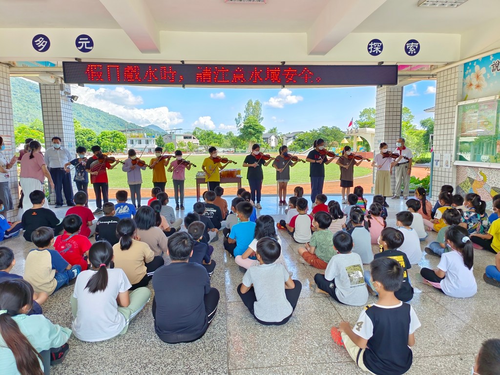 「老師辛苦了!」9月28日這日,花蓮縣立豐山國民小學迎來了一年一度的教師節,全校在穿堂面向寬闊的山峰與天空集合,家長會長及委員們特地帶來了許多蛋糕飲品與老師們分享,五年級同學更以小提琴演奏張韶涵的《隱形的翅膀》,祝老師們教師節快樂。