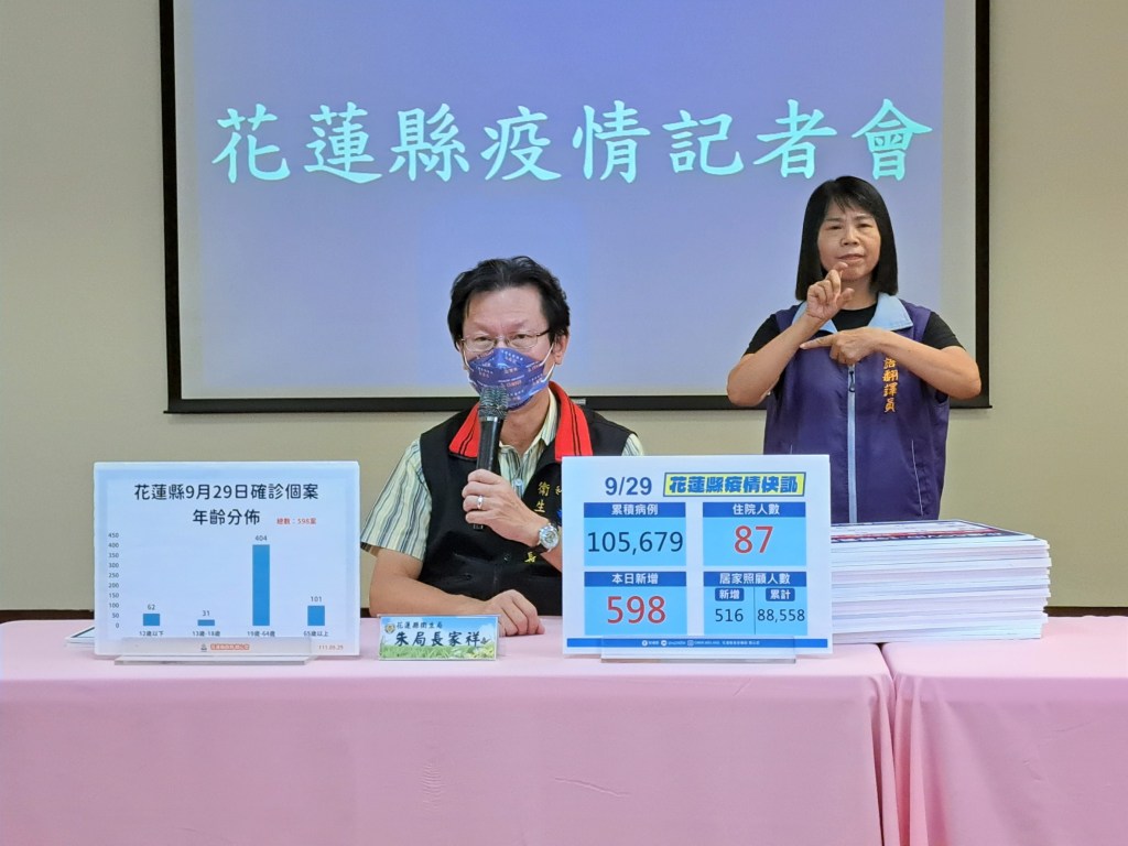 花蓮縣今(29)日新增598例新冠肺炎確診個案,花蓮縣政府召開疫情說明記者會,由衛生局長朱家祥主持。朱局長談到,莫德納次世代雙價疫苗、Novavax疫苗皆新增接種對象,公費流感疫苗將於10月1日起開始施打。