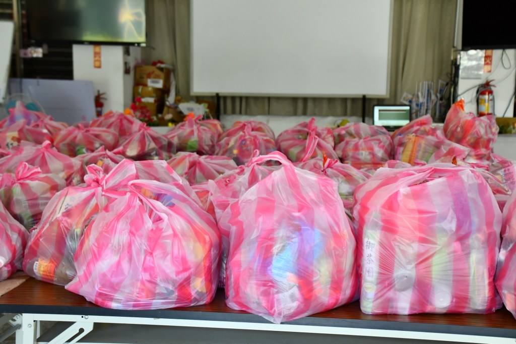 一袋袋超級具有份量的綜合物資,內容物不僅涵蓋實用的民生用品和營養食品,更裝載著宣靈堂廣大信眾的愛心,以及五福大帝的慈悲關懷。宣靈會副堂主劉正浩表示,五福大帝劉部宣靈公為瘟部主宰,繼去年背著神尊攻上玉山,今年度選擇以徒步環台,藉以祈福讓疫情早日消退,而在物資發放前,廟方也特別起轎繞境全村,將神明的護佑廣披於全體鄉親,帶來安心、安定的力量。