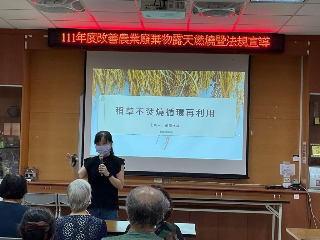 環保局指出,稽查取締露天燃燒空氣污染行為,是職責所在,但亦已結合農會辦理多場農業廢棄物露天然燒改善及資源再利用的宣導,聘請農業專家、環境學者向農友們說明焚燒農業廢棄物對空氣品質、人體健康與公共安全的危害,宣導空氣污染相關法規及農業廢棄物資源再利用方式,也獲得許多農友們翻轉觀念,響應配合,以近幾年稻作收割後稻稈燃燒陳情案為例,案件數從107年的44件降至110年的2件,111年至9月底止0件,逐年減少,顯見產、官、學的合作,發揮改善的效果。