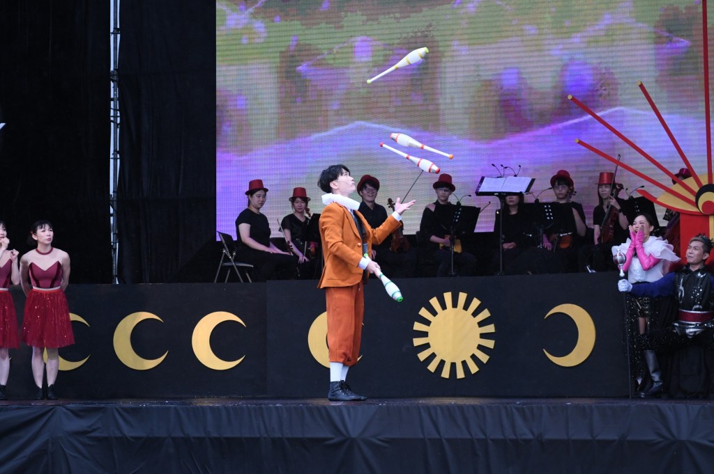 花蓮縣文化局繼去年邀請新古典室內樂團演出「阿嬤的歌本」後,今(8)日再度邀請新古典室內樂團音樂馬戲劇場《邦卡的七彩布裙》於日出大道(重慶市場旁)進行演出,首場獻給花蓮縣的鄉親,縣長徐榛蔚也出席一同欣賞,更體驗了互動式的表演模式,讓鄉親們直呼好特別!
