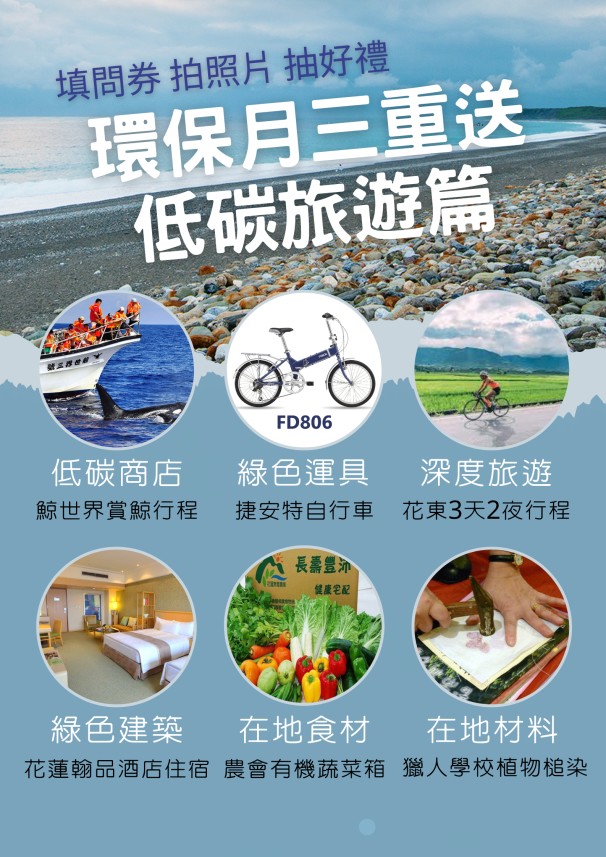 另加碼兩波抽獎活動,民眾填寫問卷後,只要分享來花蓮低碳旅遊的照片,或是發揮創意寫首充滿洄瀾風情的自由詩,便有機會抽花東3天2夜深度旅遊行程、iPhone 14、任天堂Switch等,將超值好禮帶回家喔!詳細活動資訊,可上網搜尋「花蓮低碳旅遊資訊網」及「碳索你沒來過的花蓮」FB粉專,或電洽03-831-2757。