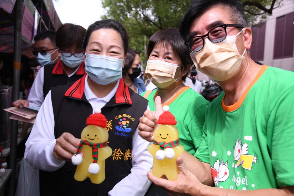 縣長徐榛蔚也展現親民形象,一攤又一攤的逛,並停下來與院士及攤販們噓寒問暖,徐縣長提及,社會安全網絡的建構需要大家攜手同心來維持,這次有幸共同來力挺畢士大教養院睽違兩年的園遊會亦是緣分也是花蓮的福份,也感謝小岳哥哥(原西瓜哥哥)帶來演出,活動熱鬧溫馨。