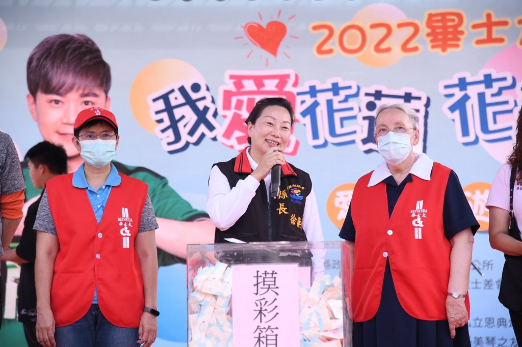 縣長徐榛蔚表示,非常敬佩畢士大院長戴孟蓁及教士顧美玲奉獻生命與時間投注在畢士大,畢士大是安定人心的力量,感佩所有院士們與支持畢士大的好朋友們挹注心力讓愛心源源不絕的湧流,徐縣長提及社會福利安全網絡是一環扣一環,助人者喜樂,安定人心者也令人尊敬,徐縣長也在現場邀請每位好朋友未來也要持續力挺畢士大,讓心充滿喜樂、盼望!