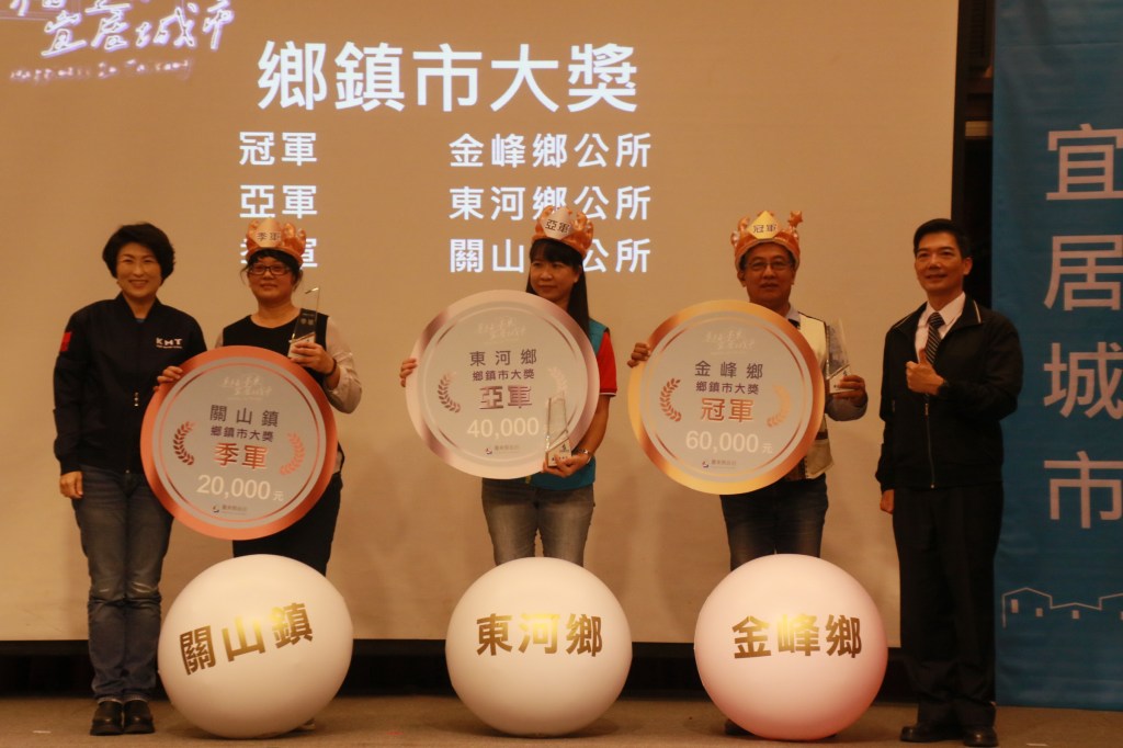 臺東縣政府跨局處整合資源,推動臺東高齡友善的健康環境,並於今(31)日舉辦111年「幸福臺東 宜居城市」社區競賽成果發表,由縣長饒慶鈴親自頒發績優社區發展協會及績優鄉鎮公所,總計28個社區獎項及2個社區領航獎,其中鄉鎮市大獎由金峰鄉公所榮獲冠軍 (獎金6萬元及獎牌乙座)、亞軍東河鄉公所、季軍關山鎮公所︒