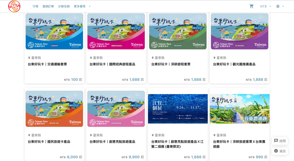 配合交通部觀光局台灣好玩卡,臺東縣政府也推出「台東好玩卡」,內容包含搭配臺東大型亮點活動所規劃的遊程、針對不同路線與節令規劃的遊程、交通運輸套票、特約店家優惠等,除了各種主題與規格價碼的套裝行程,也有針對自由行旅客的轎車、自行車租賃或包車導覽,類型多元,囊括臺東縣一年四季、不同面貌的魅力。其中,特別限定的「創意亮點旅遊產品-江賢二個展」時間只到11月27日;暖湯季搭配「知本光祭」推出的遊程則只到11月13日,想來場秋季療癒之旅的民眾,請務必把握預約時間!