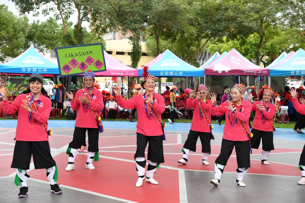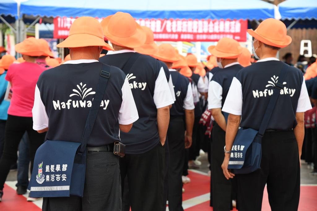 長者們頭戴吉安鄉公所特別訂製的小學時期橘黃色小帽子,背著學生書包,在吉安鄉長游淑貞的帶領下齊做國民健康操,隨後由12個文健站長者輪番上場,將文化傳統與健身運動做結合,搭配一首首膾炙人口的歌曲,充分展現各自社區的特色與向心力。