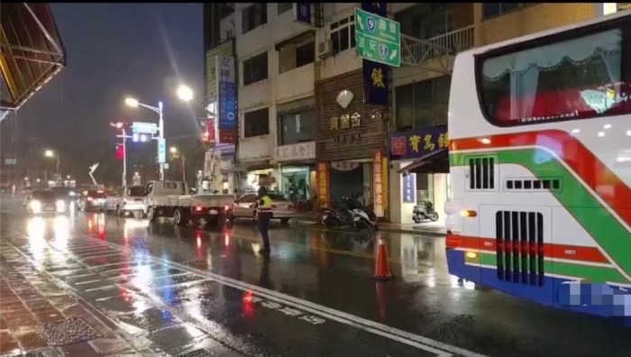 遊覽車市區中故障 花警大雨中疏導交通