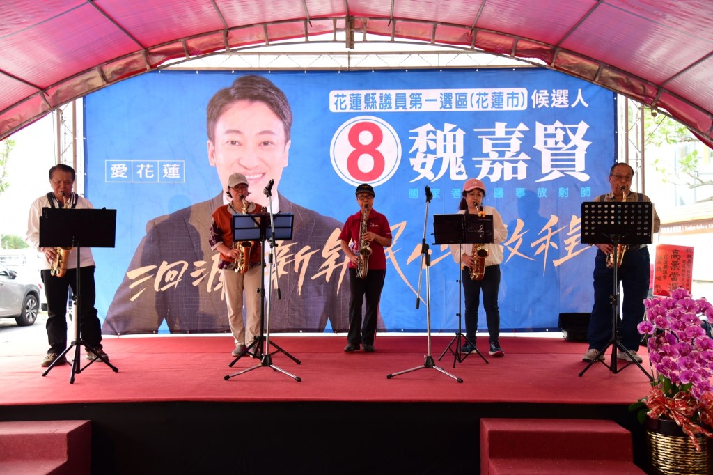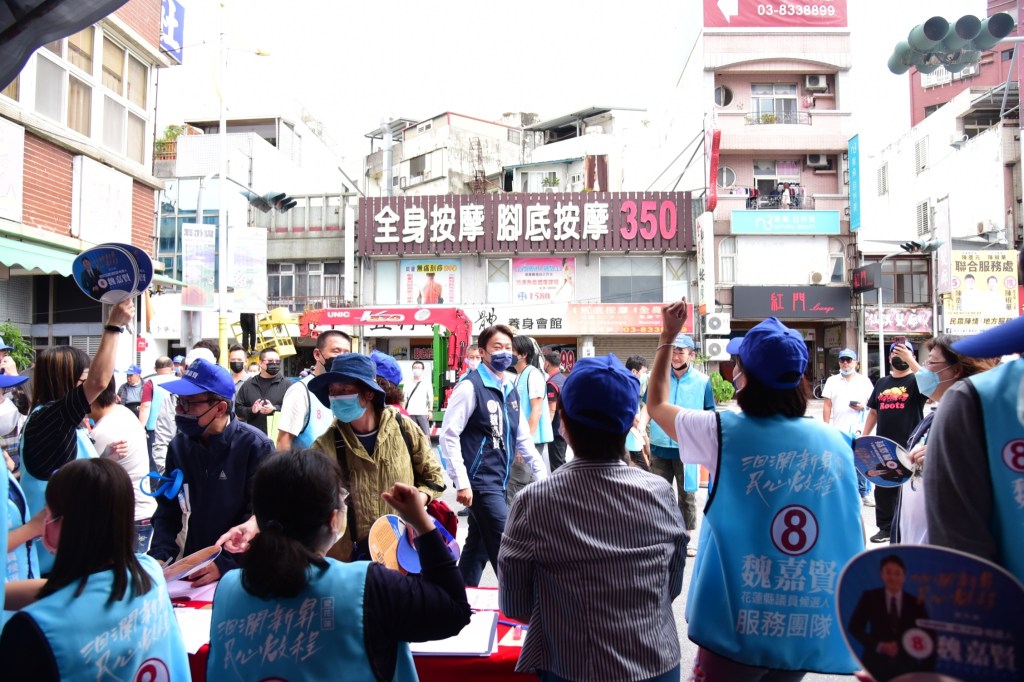 陽光露臉的週六上午,花蓮市知名地標「石來運轉」旁的空地擠滿了前來參加「花蓮縣議員第一選區候選人魏嘉賢」競選總部成立大會的花蓮鄉親,上午9時30分,魏嘉賢率競選團隊舉行祈福團拜儀式,祈求這段期間的活動一切順利,人員平安;祈福儀式在響亮的鞭炮聲中宣告禮成,魏嘉賢先向每一位工作人員致上最誠摯的感謝,也希望大家在接下來的日子能同心協力,一起拚出好成績。