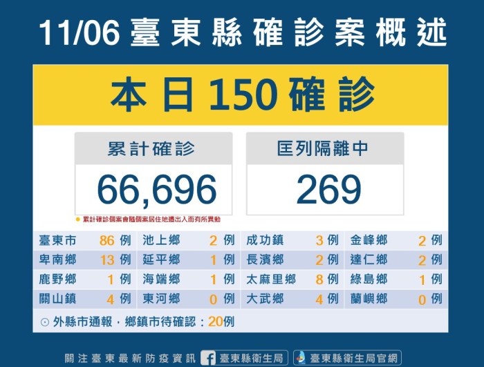 台東縣今新增150新冠確診案例 7日起中央將鬆COVID-19確診者及接觸者管制措施